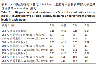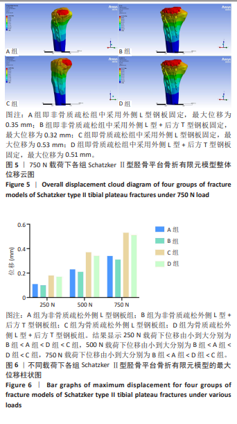 1.2.6 主要观察指标 设置250,500,750 N 3种载荷水平,分析3种载荷条件下骨块的压缩位移、最大von Mises应力以及应力分布情况。