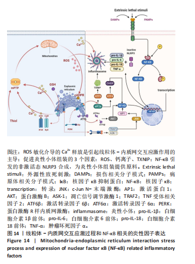 结果与结论:①与模型对照组相比,针刀干预组细胞凋亡率明显下降(P=0.000 2);NLRP3(P=0.014 4)、IP3R(P=0.013 2)、GRP75(P=0.009 9)、VDAC1(P=0.000 3)、GRP78(P=0.006 5)、CHOP(P=0.008 5)、TXNIP(P=0.001 5)蛋白表达明显下调,MFN2(P=0.010 8)蛋白表达明显上调;Ca2+水平(P < 0.000 1)、活性氧水平(P=0.039 2)明显下降;②Mito Tracker和ER Tracker荧光探针染色结果显示,线粒体-内质网共定位水平在模型对照组最高,正常对照组最低,针刀干预组高于正常对照组但低于模型对照组;③透射电镜观察显示,模型对照组线粒体-内质网的联系/接触增强,正常对照组线粒体-内质网的联系/接触较少,针刀干预组线粒体和内质网的联系/接触较正常对照组增强,但低于模型对照组。结果表明,针刀干预能够调控线粒体与内质网之间的交互应激,调节线粒体-内质网接触位点,减少Ca²⁺内流、活性氧生成以及线粒体功能障碍,从而抑制NLRP3炎性小体的生成,阐明了针刀通过调控线粒体-内质网交互应激抑制NLRP3炎性小体组装的上游机制,揭示了针刀治疗腰椎间盘突出症的深层次作用靶点,为针刀治疗腰椎间盘突出症提供了一定理论基础。