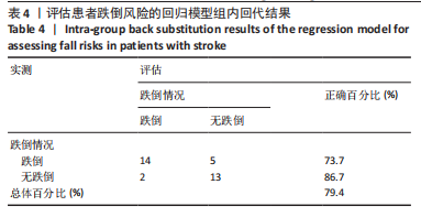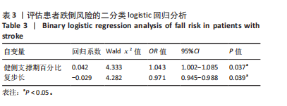 结论:脑卒中患者步行过程中的健侧支撑期百分比以及复步长能够有效评估跌倒风险。此研究通过步态时空参数构建的脑卒中患者跌倒风险评估模型,可为临床医生筛查高跌倒风险患者及实施早期预防治疗提供依据。