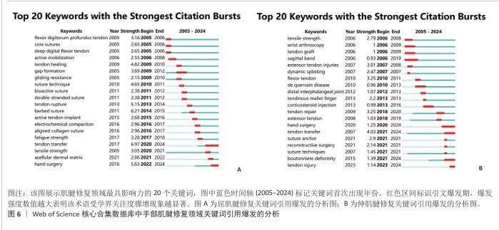 (2)手部伸肌腱修复关键词引用爆发的分析:见图6B。