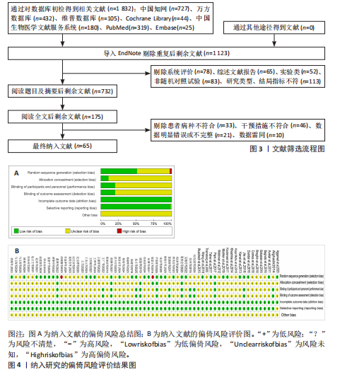 结果:①最终纳入65篇文献,共3 418例患者,包括治疗组1 726例、对照组1 692例,并研究了7种物理因子治疗膝骨关节炎的康复方案。②网状Meta分析显示,在提高治疗总有效率方面,累积概率排名曲线下面积由高到低的干预措施为(排名前3):脉冲电磁场+常规康复>超声波+常规康复>经皮电刺激+常规康复;在改善膝关节目测类比评分方面,累积概率排名曲线下面积由高到低的干预措施为(排名前3):经皮电刺激+常规康复>体外冲击波+常规康复>超声波+常规康复;在改善WOMAC总评分方面,累积概率排名曲线下面积由高到低的干预措施为(排名前3):超声波+常规康复>脉冲电磁场+常规康复>超声波+经皮电刺激+常规康复;在减少WOMAC关节僵硬评分方面,累积概率排名曲线下面积由高到低的干预措施为(排名前3):经皮电刺激+常规康复>超声波+常规康复>超声波+经皮电刺激+常规康复;在改善生活质量SF-36评分方面,累积概率排名曲线下面积由高到低的干预措施为(排名前3):脉冲电磁场+常规康复>体外冲击波+常规康复>超声波+常规康复;在改善Lysholm膝关节评分方面,累积概率排名曲线下面积由高到低的干预措施为(排名前3):超声波+常规康复>超声波+经皮电刺激+常规康复>体外冲击波+常规康复;在不良反应方面,各研究均未报道严重不良反应,多数研究仅报道了轻微的皮肤刺激、过敏反应。