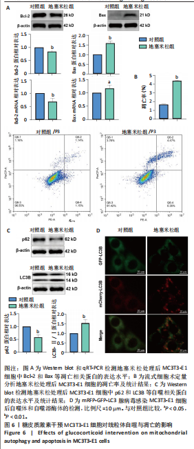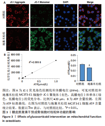METHODS: MC3T3-E1 cells were cultured in vitro and divided into control group (no treatment) and dexamethasone group (1 μmol/L dexamethasone treatment for 24 hours). Osteoblast differentiation capacity was assessed by alizarin red staining and qRT-PCR. Mitochondrial morphology was examined using transmission electron microscopy, MitoTracker Red fluorescent staining, and flow cytometry. Mitochondrial membrane potential and energy metabolism were evaluated via JC-1 fluorescent staining and ATP content measurement. Mitochondrial superoxide levels were quantified using MitoSOX™ Red fluorescent probe combined and flow cytometry. Intracellular total reactive oxygen species and glutathione levels were simultaneously measured to evaluate oxidative stress status. Additionally, western blot and qRT-PCR assays were performed to examine Bax/Bcl-2 (apoptosis) and LC3B/p62 (autophagy) expression. Flow cytometric analysis was performed to assess apoptotic rates. Autophagic flux was assessed using mRFP-GFP-LC3 adenovirus transfection followed by confocal microscopy analysis.