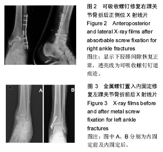 关键词: 骨科植入物, 骨植入物, 踝关节骨折, 可吸收螺钉, 金属螺钉, 内固定, 生物相容性, 踝关节功能, 随访