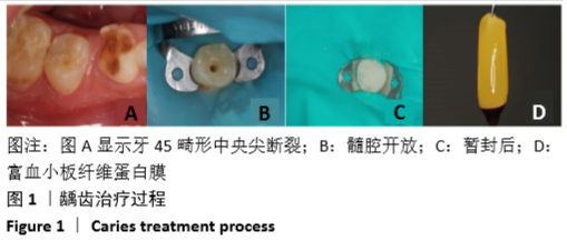结果与结论:①外伤组末次随访时,4种支架组间的牙体色泽、牙髓活力、萌出高度比较差异无显著性意义(P > 0.05),4种支架组间的根管长度、根管壁厚度、根尖周暗影、根尖孔封闭情况比较差异有显著性意义(P < 0.05),其中PRF+MTA组效果最好;②龋齿组末次随访时,4种支架组间的牙体色泽、牙髓活力、萌出高度比较差异无显著性意义(P > 0.05),4种支架组间的根管长度、根管壁厚度、根尖周暗影、根尖孔封闭情况比较差异有显著性意义(P < 0.05),其中PRF+MTA组效果最好;③无论是外伤组还是龋齿组,4种支架组间的治疗成功率比较差异有显著性意义(P < 0.05),其中以PRF+MTA组最高;④结果表明,自体富血小板纤维蛋白联合三氧化矿物聚合物在年轻恒牙再生性牙髓治疗中有优秀的生物诱导性,较其他支架能更好地保存牙髓活力,诱导年轻恒牙牙根形成,提高治疗成功率。