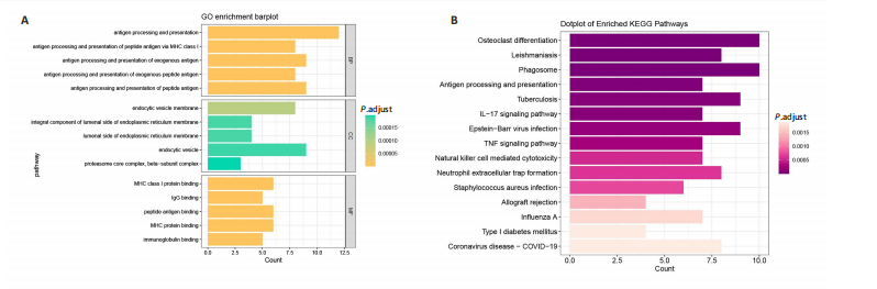 结果与结论:类风湿关节炎有2 516个差异基因,克罗恩病有281个差异基因。通WGCNA、蛋白互作网络和2种机器学习算法取交集后得到3个核心基因,半胱天冬酶1(CASP1)、三联基序21(TRIM21)及蛋白酶体亚基10(PSMB10)。富集分析显示两种疾病与抗原的加工和呈递、内质网膜腔面和多种免疫球蛋白结合相关;3个核心基因在两种疾病验证集的表达趋势与训练集一致。免疫细胞浸润分析显示,巨噬细胞(M0、M1)和中性粒细胞在类风湿关节炎与克罗恩病中的表达均显著增高,说明中性粒细胞可能在类风湿关节炎和克罗恩病发病机制中起重要作用。该研究不仅增进了对两种重要自身免疫病共性的认知,更重要的是为中国研究人员在新靶点的发现与验证、新型诊疗技术的开发以及转化医学研究模式应用等方面提供了宝贵的借鉴意义和具体的指导路径。