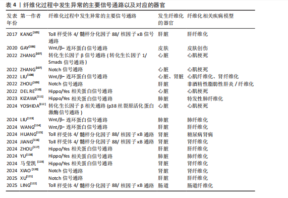 目的:归纳总结肝脏纤维化、肾脏纤维化、心脏纤维化、肺脏纤维化等与纤维化相关的疾病,重点研究纤维化中主要的异常细胞、异常信号通路和治疗方式。