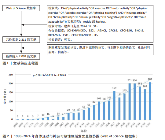 目的:利用文献计量学手段,分析身体活动与神经可塑性领域研究主题的动态演变轨迹,梳理该领域的发展态势及知识架构的演变,为后续研究提供方向性参考。