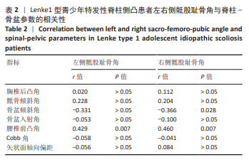 Lenke1/5/6型青少年特发性脊柱侧凸患者骶股耻骨角与脊柱-骨盆参数的相关性