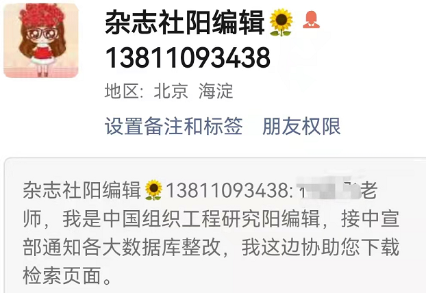 近期我编辑部接到作者反映,有人假冒《中国组织工程研究》杂志