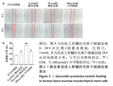 图2|槲皮素促进人骨髓间充质干细胞划痕愈合