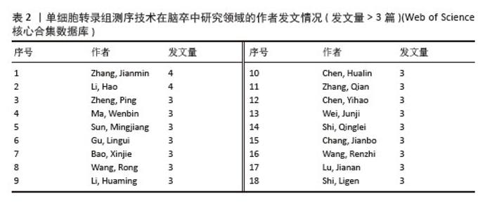 RESULTS AND CONCLUSION: Over the past decade, single-cell RNA sequencing applications in stroke research have shown consistent growth, culminating in a peak of 64 publications in 2024. China (98 articles) and the United States (50 articles) emerged as leading research forces, though China exhibits lower betweenness centrality in international research collaboration compared to the United States, suggesting enhanced transnational cooperation is required to improve global influence. Key institutions including Capital Medical University, Shanghai Jiao Tong University, and Stanford University have formed research teams led by principal investigators Zhang Jianmin, Lu Jianan, and Li Huaming, focusing on microglial heterogeneity and neurovascular unit dysfunction. Keyword analysis revealed that microglial activation-associated neuroinflammation, neuronal apoptosis, and angiogenesis constitute major research hotspots in stroke mechanisms, while molecular docking combined with single-cell RNA sequencing integrated analysis has emerged as a novel paradigm for targeted stroke drug discovery. Co-citation analysis identified transcriptional characteristics of pro-inflammatory and repair-oriented microglial subpopulations through single-cell RNA sequencing, along with their regulatory mechanisms on inflammation and apoptosis via the tumor necrosis factor-α/interleukin-6 signaling pathway. These findings indicate that single-cell RNA sequencing technology has elucidated novel mechanisms in stroke pathogenesis through decoding cellular heterogeneity, while the integration with molecular docking analysis has accelerated high-throughput screening of targeted therapeutic agents. Future integration with spatial omics and artificial intelligence may overcome current limitations of single-cell RNA sequencing, thereby providing robust research tools for developing innovative therapeutic strategies against stroke.