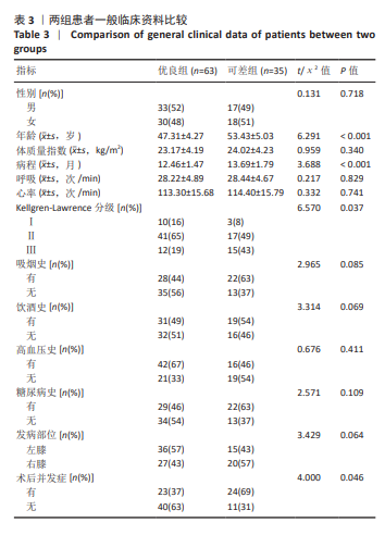 | [1] GBD 2021 Osteoarthritis Collaborators. Global, regional, and national burden of osteoarthritis, 1990-2020 and projections to 2050: a systematic analysis for the Global Burden of Disease Study 2021. Lancet Rheumatol. 2023;5(9):e508-e522. [2] ZHU S, QU W, HE C. Evaluation and management of knee osteoarthritis. J Evid Based Med. 2024;17(3):675-687. [3] CLARK GP. Treatment options for symptomatic knee osteoarthritis in adults. JAAPA. 2023;36(11):1-6. [4] KATZ JN, ARANT KR, LOESER RF. Diagnosis and Treatment of Hip and Knee Osteoarthritis: A Review. JAMA. 2021;325(6):568-578. [5] 张超, 冯汇川, 刘爱峰, 等. 超声引导下射频针刀治疗对早中期膝骨性关节炎步态分析的影响[J]. 中华中医药杂志,2025,40(3): 1493-1497. [6] 刘俊. 关节镜联合开放楔形胫骨高位截骨术治疗膝关节骨性关节炎对患者疼痛和近期关节功能恢复的作用[J]. 黑龙江医学,2023, 47(9):1066-1068. [7] KONNYU KJ, THOMA LM, CAO W, et al. Rehabilitation for Total Knee Arthroplasty: A Systematic Review. Am J Phys Med Rehabil. 2023; 102(1): 19-33. [8] DEFRANCE MJ, SCUDERI GR. Are 20% of Patients Actually Dissatisfied Following Total Knee Arthroplasty? A Systematic Review of the Literature. J Arthroplasty. 2023;38(3):594-599. [9] LEE Y, SHIN YS, KIM HJ, et al. Effectiveness and methods of cryotherapy in reducing swelling after total knee arthroplasty: A systematic review on randomized controlled trials. Nurs Open. 2023;10(9):5989-5998. [10] TAMPERE T, ARNOUTT N, VICTOR J. Total knee arthroplasty: The need for better patient selection. Knee Surg Sports Traumatol Arthrosc. 2025;33(3):784-788. [11] OZEKI N, SEIL R, KRYCH AJ, et al. Surgical treatment of complex meniscus tear and disease: state of the art. J ISAKOS. 2021;6(1):35-45. [12] LI Q, WANG H, WANG D. Effects of high tibial osteotomy combined with arthroscopy on local inflammation degree and gait activity index in patients with medial knee osteoarthritis. Pak J Med Sci. 2023;39(1): 161-165. [13] 夏宝剑, 张达夫, 王峰, 等. 银苓消肿丸联合关节镜清理术对膝骨性关节炎患者膝肿胀程度及关节活动度的影响[J]. 中国中西医结合外科杂志,2025,31(2):208-212. [14] 黄海东. 关节镜微创手术联合玻璃酸钠、塞来昔布对老年膝关节骨性关节炎患者关节功能的影响[J]. 贵州医药,2024,48(12): 1931-1932. [15] ROTINI M, PAPALIA G, SETARO N, et al. Arthroscopic surgery or exercise therapy for degenerative meniscal lesions: a systematic review of systematic reviews. Musculoskelet Surg. 2023;107(2): 127-141. [16] BELK JW, LIM JJ, KEETER C, et al. Patients With Knee Osteoarthritis Who Receive Platelet-Rich Plasma or Bone Marrow Aspirate Concentrate Injections Have Better Outcomes Than Patients Who Receive Hyaluronic Acid: Systematic Review and Meta-analysis. Arthroscopy. 2023;39(7): 1714-1734. [17] ROMANDINI I, GRASSI A, ANDREA LUCIDI G, et al. 10-Year Survival and Clinical Improvement of Meniscal Allograft Transplantation in Early to Moderate Knee Osteoarthritis. Am J Sports Med. 2024;52(8): 1997-2007. [18] REICHENBACH S, JUNI P, HINCAPIE CA, et al. Effect of transcutaneous electrical nerve stimulation (TENS) on knee pain and physical function in patients with symptomatic knee osteoarthritis: the ETRELKA randomized clinical trial. Osteoarthritis Cartilage. 2022; 30(3):426-435. [19] BARAI NK, MITTAL R, ANSARI MT, et al. Gait Analysis and Functional Knee Scores in Primary Knee Osteoarthritis and Their Correlation with Progression of the Disease in the Indian Population. Indian J Orthop. 2024;58(4):424-432. [20] YOON JY, SHIN SS. Impact of step width on trunk motion and gait adaptation in elderly women with knee osteoarthritis. J Back Musculoskelet Rehabil. 2024;37(4):989-996. [21] BACON KL, FELSON DT, JAFARZADEH SR, et al. Gait Alterations and Association With Worsening Knee Pain and Physical Function: A Machine Learning Approach With Wearable Sensors in the Multicenter Osteoarthritis Study. Arthritis Care Res (Hoboken). 2024;76(7): 984-992. [22] 何金龙, 余俊, 杨海波, 等. 三维步态分析系统在膝骨性关节炎患者中的临床研究[J]. 宁夏医学杂志,2021,43(8):721-724. [23] 张昊, 靳勇. 经导管动脉栓塞术治疗膝骨关节炎临床应用及进展[J]. 介入放射学杂志,2025,34(2):206-212. [24] GELBER AC. Knee Osteoarthritis. Ann Intern Med. 2024;177(9): ITC129-ITC144. [25] SIMENTAL-MENDIA M, ORTEGA-MATA D, ACOSTA-OLIVO CA, et al. Effect of collagen supplementation on knee osteoarthritis: an updated systematic review and meta-analysis of randomised controlled trials. Clin Exp Rheumatol. 2025;43(1):126-134. [26] 王宝辉, 王暄齐, 樊晓晨, 等. 膝关节镜手术联合矫形支具治疗对膝关节骨性关节炎患者围手术期指标、膝关节功能和关节活动度的影响[J]. 现代生物医学进展,2024,24(12):2259-2263. [27] DUONG V, OO WM, DING C, et al. Evaluation and Treatment of Knee Pain: A Review. JAMA. 2023;330(16):1568-1580. [28] PERRUCCIO AV, YOUNG JJ, WILFONG JM, et al. Osteoarthritis year in review 2023: Epidemiology & therapy. Osteoarthritis Cartilage. 2024; 32(2):159-165. [29] JIN Q, CHEN M, KONG J, et al. Clinical and Animal Studies of Waist and Knee Scraping Therapy for Knee Osteoarthritis. Comb Chem High Throughput Screen. 2024;27(15):2278-2294. [30] LIEW JW, KING LK, MAHMOUDIAN A, et al. A scoping review of how early-stage knee osteoarthritis has been defined. Osteoarthritis Cartilage. 2023;31(9):1234-1241. [31] 刘欣悦, 孙旭, 李佼徽, 等. 扬刺法治疗膝骨关节炎的研究进展[J]. 广州中医药大学学报,2025,42(2):425-429. [32] EGGELING L, KLEPSCH L, AKOTO R, et al. Clinical results after very early, early and late arthroscopic arthrolysis of the knee. Int Orthop. 2022;46(2):265-271. [33] 林伟明, 孙剑光, 梁传兴, 等. 自体富血小板血浆注射联合关节镜清理术治疗膝关节骨性关节炎患者的临床效果[J]. 医药前沿,2025, 15(2):10-13. [34] H
