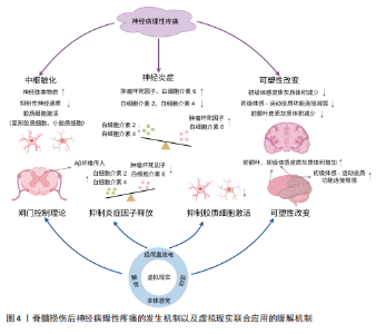 | [1] HUA R, ZHAO C, XU Z, et al. ROS-responsive nanoparticle delivery of ferroptosis inhibitor prodrug to facilitate mesenchymal stem cell-mediated spinal cord injury repair. Bioact Mater. 2024;38:438-454. [2] HUNT C, MOMAN R, PETERSON A, et al. Prevalence of chronic pain after spinal cord injury: a systematic review and meta-analysis. Reg Anesth Pain Med. 2021;46: 328-336. [3] STAROSTA AJ, BOMBARDIER CH, KAHLIA F, et al. Feasibility of Brief, Hypnotic Enhanced Cognitive Therapy for SCI-related Pain During Inpatient Rehabilitation. Arch Phys Med Rehabil. 2024;105:1-9. [4] COLLOCA L, LUDMAN T, BOUHASSIRA D, et al. Neuropathic pain. Nat Rev Dis Primers. 2017;3:17002. [5] AURUCCI GV, PREATONI G, DAMIANI A, et al. Brain-Computer Interface to Deliver Individualized Multisensory Intervention for Neuropathic Pain. Neurotherapeutics. 2023;20:1316-1329. [6] 王玲,陈楠.心理意象治疗脊髓损伤后神经性疼痛:神经影像学研究进展[J].中国医学影像技术,2023,39(4):602-605. [7] 陈莉,雷静,尤浩军.脊髓损伤后病理性疼痛发生机制及治疗研究进展[J].中国疼痛医学杂志,2022,28(11):843-848. [8] CALDERONE A, CARDILE D, DE LUCA R, et al. Brain Plasticity in Patients with Spinal Cord Injuries: A Systematic Review. Int J Mol Sci. 2024;25(4):2224. [9] ROSNER J, DE ANDRADE DC, DAVIS KD, et al. Central neuropathic pain. Nat Rev Dis Primers. 2023;9:73. [10] MOSELEY LG. Using visual illusion to reduce at-level neuropathic pain in paraplegia. Pain. 2007;130:294-298. [11] TAN M, FENG Z, CHEN H, et al. Transcranial direct current stimulation regulates phenotypic transformation of microglia to relieve neuropathic pain induced by spinal cord injury. Front Behav Neurosci. 2023;17:1147693. [12] RUIMONTE-CRESPO J, PLAZA-MANZANO G, DÍAZ-ARRIBAS MJ, et al. Aerobic Exercise and Neuropathic Pain: Insights from Animal Models and Implications for Human Therapy. Biomedicines. 2023;11(12):3174. [13] HUANG Q, LIN J, HAN R, et al. Using Virtual Reality Exposure Therapy in Pain Management: A Systematic Review and Meta-Analysis of Randomized Controlled Trials. Value Health. 2022;25:288-301. [14] SOLER D, MORIÑA D, KUMRU H, et al. Transcranial Direct Current Stimulation and Visual Illusion Effect According to Sensory Phenotypes in Patients With Spinal Cord Injury and Neuropathic Pain. J Pain. 2021;22:86-96. [15] MOLLÀ-CASANOVA S, MUÑOZ-GÓMEZ E, AGUILAR-RODRÍGUEZ M, et al. Effectiveness of virtual-walking intervention combined with exercise on improving pain and function in incomplete spinal cord injury: a feasibility study. Spinal Cord Ser Cases. 2024;10:64. [16] MA J, ZHAO D, XU N, et al. The effectiveness of immersive virtual reality (VR) based mindfulness training on improvement mental-health in adults: A narrative systematic review. Explore (NY). 2023;19:310-318. [17] 张舒扬,杜心愉,赵冬临,等.虚拟现实技术在周围神经损伤功能恢复中的应用[J].中国组织工程研究,2025,29(21):4593-4601. [18] KYATHANAHALLY SP, AZZARITO M, ROSNER J, et al. Microstructural plasticity in nociceptive pathways after spinal cord injury. J Neurol Neurosurg Psychiatry. 2021;92:863-871. [19] OSSIPOV MH, MORIMURA K, PORRECA F. Descending pain modulation and chronification of pain. Curr Opin Support Palliat Care. 2014;8:143-151. [20] FRANÇOIS A, LOW SA, SYPEK EI, et al. A Brainstem-Spinal Cord Inhibitory Circuit for Mechanical Pain Modulation by GABA and Enkephalins. Neuron. 2017;93(4):822-839.e6. [21] CHEN T, TANIGUCHI W, CHEN QY, et al. Top-down descending facilitation of spinal sensory excitatory transmission from the anterior cingulate cortex. Nat Commun. 2018;9:1886. [22] LÜTOLF R, ROSNER J, CURT A, et al. Indicators of central sensitization in chronic neuropathic pain after spinal cord injury. Eur J Pain. 2022;26:2162-2175. [23] MA YC, KANG ZB, SHI YQ, et al. The Complexity of Neuropathic Pain and Central Sensitization: Exploring Mechanisms and Therapeutic Prospects. J Integr Neurosci. 2024;23:89. [24] FINNERUP NB, BAASTRUP C. Spinal cord injury pain: mechanisms and management. Curr Pain Headache Rep. 2012;16:207-216. [25] 贾延劼,李燕飞,陈雪梅.脊髓损伤后神经病理性疼痛的研究现状[J].内科理论与实践,2017,12(2):92-96. [26] SONG Y, XUE T, GUO S, et al. Inhibition of aquaporin-4 and its subcellular localization attenuates below-level central neuropathic pain by regulating astrocyte activation in a rat spinal cord injury model. Neurotherapeutics. 2024;21:e00306. [27] 阮婷婷,翁明奇,吴璨,等.认知行为疗法和虚拟现实疗法干预神经性疼痛的作用及机制[J].生物化学与生物物理进展, 2023,50(10):2396-2405. [28] YAO D, CHEN Y, CHEN G. The role of pain modulation pathway and related brain regions in pain. Rev Neurosci. 2023;34:899-914. [29] MELZACK R. From the gate to the neuromatrix. Pain. 1999;Suppl 6: S121-s126. [30] HUANG J, GADOTTI VM, CHEN L, et al. A neuronal circuit for activating descending modulation of neuropathic pain. Nat Neurosci. 2019;22:1659-1668. [31] JUTZELER CR, HUBER E, CALLAGHAN MF, et al. Association of pain and CNS structural changes after spinal cord injury. Sci Rep. 2016;6:18534. [32] WANG F, TIAN ZC, DING H, et al. A sensory-motor-sensory circuit underlies antinociception ignited by primary motor cortex in mice. Neuron. 2025;113(12):1947-1968.e7. [33] 邱义,马炜玮,张会娟,等.经颅电刺激镇痛研究的现状及展望[J].生物化学与生物物理进展,2024,51(5):1119-1133. [34] XIE L, WU H, CHEN Q, et al. Divergent modulation of pain and anxiety by GABAergic neurons in the ventrolateral periaqueductal gray and dorsal raphe. Neuropsychopharmacology. 2023;48: 1509-1519. [35] ONI-ORISAN A, KAUSHAL M, LI W, et al. Alterations in Cortical Sensorimotor Connectivity following Complete Cervical Spinal Cord Injury: A Prospective Resting-State fMRI Study. PLoS One. 2016;11: e0150351. [36] HARRIS AJ. Cortical origin of pathological pain. Lancet. 1999;354:1464-1466. [37] 严传婷,杜宜楠