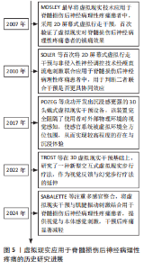 码能力下降,促使疼痛信号的产生和放大。 脊髓损伤不仅会导致脊髓水平的中枢敏化现象,还会引起大脑的异常可塑性改变[8]。这种异常改变不仅涉及感觉运动皮质,还涉及位于疼痛矩阵中处理情感和认知的前额叶皮质[30],降低了大脑对疼痛的编码能力,最终导致脊髓损伤后神经病理性疼痛的发生,见图4。 感觉和运动皮质的可塑性改变主要呈现以下特征:初级体感皮质灰质体积减小,反映了神经元树突复杂性降低和突触连接减少,这会影响正常的感觉信息处理。JUTZELER等[31]在脊髓损伤患者的研究中观察到初级体感皮质灰质体积减小,且这一变化与疼痛程度呈负相关关系;初级运动皮质活性下降[7,32],初级运动皮质与导水管周围灰质-延髓头端腹内侧-脊髓背角构成的下行疼痛抑制通路密切相关[33],对初级运动皮质进行刺激可增强同侧导水管周围灰质神经元的放电活性,同时减弱γ-氨基丁酸能中间神经元对导水管周围灰质投射神经元的抑制作用,从而激活下行疼痛抑制通路[33-34]。这种激活促进了内源性阿片类物质释放,能有效抑制疼痛信号传递,最终降低痛觉感知[34],而这一机制在脊髓损伤后效能下降;初级体感皮质-初级运动皮质兴奋-抑制失衡,导致初级运动皮质神经元的活动降低,进而减弱疼痛下行抑制系统的能力,促使疼痛的发生[32];静息态功能连接研究表明,脊髓损伤会导致初级体感皮质与初级运动皮质功能连接减弱,而与其他疼痛相关脑区的连接增强,这种异常连接模式变化使得更容易激活疼痛网络[35],从而诱发神经病理性疼痛。上述改变破坏了感觉反馈与运动意图的匹配,导致感觉-运动整合环路异常,疼痛通路进一步被激活,这是脊髓损伤后神经病理性疼痛的关键发病机制[36]。 脊髓损伤还会引起前额叶皮质的可塑性改变,前额叶皮质位于疼痛矩阵的内侧上升通路,处理疼痛的情感维度,同时前额叶皮质纤维束可以向下投射至导水管周围灰质[30],发挥疼痛抑制作用。导水管周围灰质是疼痛下行抑制系统的重要组成部分,在疼痛下行调控通路和疼痛缓解中起重要作用,是诸多高级痛觉中枢下行传递至脑干的交汇点,通过向脊髓投射抑制性信号,促进阿片类物质的释放[37],实现对疼痛的调控。神经影像学研究显示,脊髓损伤后神经病理性疼痛患者前额叶区域灰质体积减小[38],这些变化直接影响患者的疼痛认知评价和情绪调节能力,导致疼痛灾难化思维增加、痛苦无助感增强以及疼痛应对策略不当。 2.2 虚拟现实应用于脊髓损伤后神经病理性疼痛的历史研究进展 虚拟现实应用主要经历了从基础2D显示、2D与神经调控融合、3D立体显示到交互式体验,最终至多感官整合的演进历程,见图5。MOSLEY[10]最早将虚拟现实应用于脊髓损伤后神经病理性疼痛患者中,采用2D屏幕式虚拟行走干预,首次验证了虚拟现实对脊髓损伤后神经病理性疼痛患者的镇痛效果。随后为进一步提高疗效,SOLER等[39]将2D屏幕式虚拟行走干预与非侵入性神经调控技术经颅直流电刺激联合应用于脊髓损伤后神经病理性疼痛患者中,用于判断二者联合干预是否更具协同效应,结果显示联合干预的效果比单独使用任何一种干预更好、更持久。随后POZEG等[40]成功开发出沉浸感更强的3D头戴式虚拟现实干预设备,该装置完全阻隔了使用者对外部物理环境的视觉感知,使感官系统被虚拟环境全方位包围,从而实现最高程度的存在与沉浸体验。TROST等[41]在3D虚拟现实干预基础上,研究了一种新型交互式虚拟步行疗法,作为视觉反馈与幻觉步行疗法的延伸。其中,虚拟步行干预仍建立在先前的研究基础上,但允许脊髓损伤后神经病理性疼痛患者自主控制虚拟步态,与完全沉浸式的虚拟环境进行交互,结果显示患者疼痛强度明显减弱。如今更注重虚拟现实应用的多感官整合,例如视觉与本体感觉刺激的联合应用,SABALETTE等[42]将虚拟现实干预与肌腱振动刺激结合用于脊髓损伤后神经病理性疼痛患者,结果显示组合干预效果最佳,干预后疼痛显著减轻。"