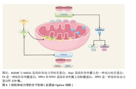 2.1 线粒体动力学的概述 线粒体是细胞内重要的细胞器,会经过分裂、融合、自噬和运输等过程,这些过程较为关键,能维持线粒体的稳定状态,线粒体在细胞内的形态、质量和数量分布会影响其功能[1]。线粒体有自己的DNA,它们需要定期更新和修复才能保持正常工作。建议深入研究线粒体动力学,了解线粒体的形态变化与排列情况,观察线粒体与其他细胞器之间怎样互动,从而找出线粒体如何调控细胞功能的原理。 越来越多的研究发现,线粒体动力学失衡与很多疾病有关,如神经退行性疾病、代谢性疾病、心血管疾病、感染和炎症等[2],研究线粒体动力学能更快地弄清这些疾病的发病原因,对线粒体疾病的临床诊断和治疗有很大的帮助:比如通过线粒体质量控制来维持它的正常功能,加快线粒体的融合与自噬,清除环境内受损或功能不好的线粒体,可以抑制线粒体裂变,减少碎片化的线粒体。 2.1.1 线粒体结构和功能 线粒体是由外膜、内膜、膜间隙和基质组成的双膜包围的细胞器[3]。线粒体的外膜由磷脂双层构成,外膜上的孔蛋白允许小分子自由通过,而大分子则需要借助线粒体膜上的转运蛋白进行主动运输[4]。此外,线粒体外膜与内质网膜通过特定的蛋白质相互连接,形成“线粒体-内质网接触位点”,这一结构在脂质交换和钙离子信号传递等过程中扮演着关键角色[5]。 内膜具有许多褶皱,它们极大增加了膜的表面积[6],膜表面积的增加意味着参与ATP合成的蛋白质和酶的空间变大,从而提高其能量代谢效率。内膜不同于外膜,对大多数分子都表现出高度的选择性和不渗透性,内膜的特殊转运蛋白控制着特定分子的方向,例如ADP、ATP以及磷酸盐离子,而这些分子参与了能量的产生,内膜的特殊转运蛋白还促进了ATP、ADP和磷酸等关键代谢物的运输,确保了线粒体与细胞其他部分之间的能量交换。线粒体膜间隙是位于线粒体内膜与外膜之间的狭窄区域,这一区域十分关键,是细胞能量生成与调控的重要场所[7],ATP合成和细胞信号传导也是依赖于这一结构。膜间隙不仅是细胞能量代谢的关键场所,还在细胞信号传导、凋亡调控以及代谢物储存等方面有着极为重要的影响,更是细胞维持正常生理功能的重要结构基础。膜间隙内富含多种蛋白质,其中细胞色素C是关键的,其在凋亡过程中不可替代[8]。膜间隙还能储存线粒体和细胞功能所需的关键小分子、离子以及其他代谢物,ADP与ATP这两种能量分子能在基质与膜间隙之间交换,为细胞提供能量支持,确保细胞各项生命活动进行。 2.1.2 线粒体分裂 线粒体分裂是指单个线粒体分裂成2个更小的线粒体[9],这种动态过程对维持线粒体健康、调节线粒体数量以及各种细胞功能有很大的帮助。动力蛋白相关蛋白1(Dynamin-related protein 1,Drp1)是细胞质内调控线粒体分裂的核心蛋白[10],线粒体分裂过程一旦开始,Drp1就会被带到外膜指定位置,该过程依靠Drp1与线粒体外膜上特定适配蛋白两者的作用[11],到达分裂位点后,Drp1会聚集形成一种较大的同源多聚体复合物,这些复合物会绕着线粒体排列并形成螺旋样的结构,这些螺旋结构以能量驱动的方式收缩,促使线粒体外膜发生分裂[10]。 线粒体分裂是一种细胞机制,它能把细胞内非正常的线粒体分开,有效找出有问题的线粒体片段,并在线粒体自噬的过程中把它们降解[12],这对于维护细胞内线粒体群体的健康十分重要。线粒体分裂还让线粒体在细胞内分布更广,特别是在那些能量需求特别多的地方,如神经元的突触附近,或是细胞分裂活跃的区域,这种分布能保证细胞内的能量供应和代谢需求。面对细胞应激压力或环境变化时,线粒体分裂表现出很高的灵活性,细胞会调整线粒体的大小和分布,快速改变能量生产和代谢策略。线粒体分裂还与细胞凋亡关系密切,凋亡过程中线粒体分裂通常会加强,这有助于释放促凋亡因子并推动细胞死亡过程[13]。线粒体分裂有助于维持线粒体的健康和功能,也提高了细胞在能量供应、代谢需求以及应对外界压力的灵活性和适应性,它在程序性细胞死亡过程中作用重大[14]。 2.1.3 线粒体的融合 线粒体融合是细胞生物学中的一个很重要过程,由2个或多个线粒体一起组成一个更大的线粒体[15],这有助于确保线粒体网络的动态平衡、维持线粒体正常功能,增强细胞对外界环境的适应[16]。有两组蛋白质家族参与这一复杂化的过程:一组是位于线粒体内膜的视神经萎缩蛋白1(optic atrophy type1,OPA1),另一组是位于线粒体外膜的融合蛋白1(mitofusin 1,Mfn1)和线粒体融合蛋白2(mitofusin 2,Mfn2)[17],这些蛋白质能极大程度加快线粒体膜的靠近与融合。 线粒体融合的第一步是线粒体之间的靠近,这个过程可能依靠细胞内的微管结构和马达蛋白来协助,如Kinesins和Dyneins[18],这些蛋白能让线粒体在细胞里移动并找到合适的位置来融合。线粒体靠近后,位于外膜的Mfn1和Mfn2蛋白开始起作用,它们互相配合,形成连接2个线粒体外膜的桥梁,内膜上的OPA1蛋白也加入进来,用它的特殊功能促进内膜融合[19]。这些蛋白质之间的共同合作让线粒体两层膜完全融合。 线粒体融合与分裂之间有一种微妙的平衡,这种平衡调控线粒体的大小、形状和功能,细胞能够灵活应对各种能量需求和外界刺激,确保功能的稳定。线粒体融合是一个线粒体质量控制过程,它通过融合健康的线粒体、清除受损的部分,来维持线粒体整个网络