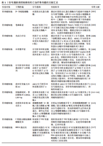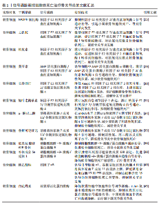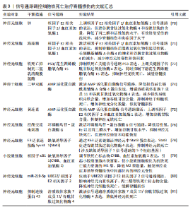 鼠骨坏死区注射虾青素发现,虾青素可以激活 JAK2/信号转导和转录激活因子3信号通路的表达,继而增强铁死亡关键因子谷胱甘肽、谷胱甘肽过氧化物酶4等表达,减少丙二醛以及活性氧积累,对地塞米松诱导的成骨细胞铁死亡发挥抑制作用,缓解激素性股骨头坏死。 BTRC/核因子E2相关因子2信号通路:ZHENG等[138]通过沉默生长因子独立性1发现,生长因子独立性1的抑制反向促进其靶点miR-150-3p的表达,继而通过调节BTRC/核因子E2相关因子2信号通路的传导,抑制骨髓间充质干细胞铁死亡,逆转地塞米松对激素性股骨头坏死的诱导。 关于信号通路调控铁死亡治疗激素性股骨头坏死的研究较少,目前有很大可待挖掘的领域,例如,信号通路是否能干预内皮细胞、脂肪细胞铁死亡,从而加快血管损伤的修复、降低髓内压,达到改善股骨头内微循环的目的。见图9及表7。"