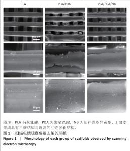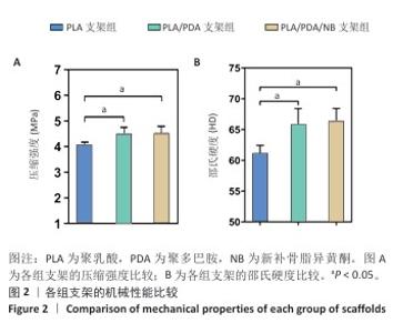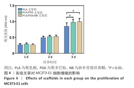 METHODS: (1) Fused deposition modeling technology was used to manufacture a 3D printed polylactic acid scaffold. These polylactic acid scaffolds were immersed in a dopamine solution containing or without neobavaisoflavone to produce polylactic acid/polydopamine/neobavaisoflavone scaffolds and polylactic acid/polydopamine scaffolds, respectively. The surface morphology, surface hardness, and compressive strength of the three groups of scaffolds were characterized, and the drug release properties of the polylactic acid/polydopamine/neobavaisoflavone scaffolds were investigated. (2) Mouse embryonic osteoblasts MC3T3-E1 were co-cultured with the three groups of scaffolds. The cytocompatibility of the scaffolds was assessed using CCK-8 assay and live-dead cell staining. The effects of the scaffolds on osteoblast migration were evaluated using Transwell assays. The effects of the scaffolds on osteoblast differentiation were assessed using alkaline phosphatase quantification and Alizarin red staining. RAW264.7 cells were co-cultured with the three groups of scaffolds. After osteoclast induction, the effects of the scaffolds on osteoclast differentiation were assessed by tartrate-resistant acid phosphatase staining.