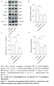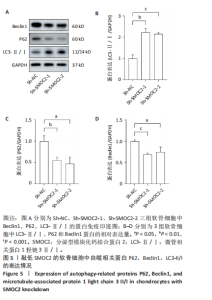 Results and Conclusion: (1) Compared with the control group, there was a decrease in the expression of SMOC2, a decrease in the expression of autophagy-associated protein P62, an increase in the expression of Beclin, and no difference in the expression of microtubule-associated protein 1 light chain 3 II/I in cartilage tissues of the rat acetabular top wall in the disease group. (2) Compared with the Sh-NC group, P62 expression was decreased, microtubule-associated protein 1 light chain 3 II/I ratio was increased, and Beclin1 expression was decreased in chondrocytes of the Sh-SMOC2-1 and Sh-SMOC2-2 groups. (3) Compared with the Sh-SMOC2 group, P62 expression was elevated, microtubule-associated protein 1 light chain 3 II/I ratio was decreased, and there was no difference in Beclin1 expression in chondrocytes of the Sh-SMOC2+740 Y-P group. In conclusion, autophagy is enhanced in acetabular chondrocytes of 2-week-old rats with developmental dysplasia of the hip, and SMOC2 can regulate autophagy in rat chondrocytes through the phosphatidylinositol 3-kinase/AKT signaling pathway.