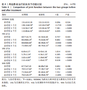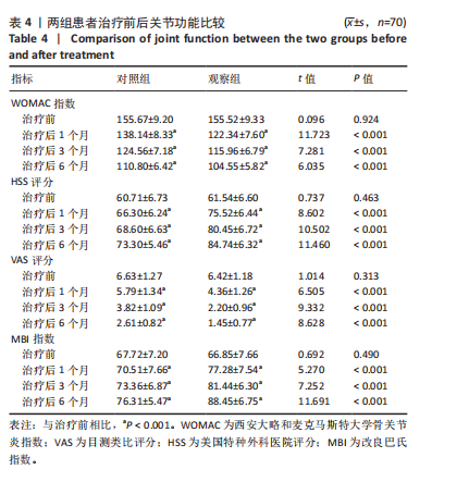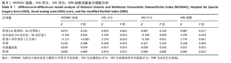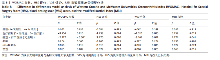 RESULTS AND CONCLUSION: (1) At each time point after treatment, both groups showed significant improvements in step frequency, step speed, step length, and the proportions of stance phase and swing phase compared to pre-treatment, with the observation group outperforming the control group (P < 0.05). (2) Compared with the control group, Western Ontario and McMaster Universities Osteoarthritis Index and visual analog scale scores were significantly decreased in the observation group at each time point after treatment (P < 0.05). In contrast, the scores of Hospital for Special Surgery Score and the modified Barthel Index were significantly increased (P < 0.05). (3) The results of the generalized estimation equation model showed that the treatment method in the observation group had statistically significant effects on step frequency, step speed, step length, and the proportion of supporting phase and swaying phase (P < 0.05). (4) Logistic regression analysis showed that, after adjusting for confounding factors, stride frequency, stride speed, stride length, proportion of supporting phase and swaying phase were closely related to the score of Western Ontario and McMaster Universities Osteoarthritis Index, Hospital for Special Surgery Score, visual analog scale score, and the modified Barthel Index (P < 0.05). (5) The results of the difference-in-differences model showed that the observation group had significant effects on Western Ontario and McMaster Universities Osteoarthritis Index (β=-2.117, P < 0.001), the Hospital for Special Surgery Score (β=3.270, P < 0.001), visual analog scale score (β=-3.105, P < 0.001), and the modified Barthel Index (β=2.774, P < 0.001), with all indicators showing superior outcomes compared with the control group. (6) The incidence of adverse reactions was 6% in the observation group and 9% in the control group, with no statistically significant difference between the two groups (P > 0.05). Overall, warm acupuncture combined with platelet-rich plasma injection therapy can effectively improve the joint function and gait parameters in patients with knee osteoarthritis, making it more valuable in promoting functional recovery in these patients.