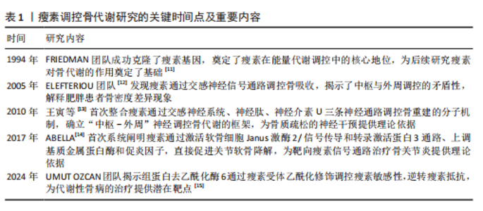 [1] ARJUNAN D, PRASAD TN, DAS L, et al. Osteoporosis and Obesity. Indian J Orthop. 2023;57(Suppl 1):218-224. [2] KIRK B, FEEHAN J, LOMBARDI G, et al. Muscle, Bone, and Fat Crosstalk: the Biological Role of Myokines, Osteokines, and Adipokines. Curr Osteoporos Rep. 2020; 18(4):388-400. [3] DUCY P, AMLING M, TAKEDA S, et al. Leptin inhibits bone formation through a hypothalamic relay: a central control of bone mass. Cell. 2000;100(2):197-207. [4] TAKEDA S, ELEFTERIOU F, LEVASSEUR R, et al. Leptin regulates bone formation via the sympathetic nervous system. Cell. 2002;111(3):305-317. [5] HE Q, QIN R, GLOWACKI J, et al. Synergistic stimulation of osteoblast differentiation of rat mesenchymal stem cells by leptin and 25(OH)D(3) is mediated by inhibition of chaperone-mediated autophagy. Stem Cell Res Ther. 2021;12(1):557. [6] GRAEF F, WEI Y, GARBE A, et al. Increased cancellous bone mass accompanies decreased cortical bone mineral density and higher axial deformation in femurs of leptin-deficient obese mice. J Mech Behav Biomed Mater. 2024;160:106745. [7] HU H, LUO S, LAI P, et al. ANGPTL4 binds to the leptin receptor to regulate ectopic bone formation. Proc Natl Acad Sci U S A. 2024;121(1):e2310685120. [8] MA S, WANG N, ZHANG P, et al. Fecal microbiota transplantation mitigates bone loss by improving gut microbiome composition and gut barrier function in aged rats. PeerJ. 2021;9:e12293. [9] MOHAMMADI SM, SANIEE N, BORZOO T, et al. Osteoporosis and Leptin: A Systematic Review. Iran J Public Health. 2024;53(1):93-103. [10] HANSEN MS, FROST M. Alliances of the gut and bone axis. Semin Cell Dev Biol. 2022;123:74-81. [11] ZHANG Y, PROENCA R, MAFFEI M, et al. Positional cloning of the mouse obese gene and its human homologue. Nature. 1994;372(6505):425-432. [12] ELEFTERIOU F, AHN JD, TAKEDA S, et al. Leptin regulation of bone resorption by the sympathetic nervous system and CART. Nature. 2005;434(7032):514-520. [13] 王寅,马丽焱.瘦素对骨重建的神经调节[J].生理科学进展,2010,41(3):229-231. [14] ABELLA V, SCOTECE M, CONDE J, et al. Leptin in the interplay of inflammation, metabolism and immune system disorders. Nat Rev Rheumatol. 2017;13(2):100-109. [15] GUAN D, MEN Y, BARTLETT A, et al. Central inhibition of HDAC6 re-sensitizes leptin signaling during obesity to induce profound weight loss. Cell Metab. 2024;36(4):857-876. [16] OBRADOVIC M, SUDAR-MILOVANOVIC E, SOSKIC S, et al. Leptin and Obesity: Role and Clinical Implication. Front Endocrinol (Lausanne). 2021;12:585887. [17] SOMMER C, VANGBERG KG, MOEN G, et al. Insulin and Body Mass Index Decrease Serum Soluble Leptin Receptor Levels in Humans. J Clin Endocrinol Metab. 2023; 108(5):1110-1119. [18] GRASSO P. Harnessing the Power of Leptin: The Biochemical Link Connecting Obesity, Diabetes, and Cognitive Decline. Front Aging Neurosci. 2022;14:861350. [19] FAN X, YUAN W, HUANG W, et al. Recent progress in leptin signaling from a structural perspective and its implications for diseases. Biochimie. 2023;212:60-75. [20] FAN X, QIN R, YUAN W, et al. The solution structure of human leptin reveals a conformational plasticity important for receptor recognition. Structure. 2024;32(1): 18-23. [21] HANKIR MK, BRUNEAU M. Periphery-Brain Interactions and Leptin in the Regulation of Whole-Body Energy Metabolism. Nutrients. 2022;14(8):1594. [22] MANGION D, PACE NP, FORMOSA MM. The relationship between adipokine levels and bone mass-A systematic review. Endocrinol Diabetes Metab. 2023;6(3):e408. [23] AYED K, NABI L, AKROUT R, et al. Obesity and cancer: focus on leptin. Mol Biol Rep. 2023;50(7):6177-6189. [24] CHILDS GV, ODLE AK, MACNICOL MC, et al. The Importance of Leptin to Reproduction. Endocrinology (Philadelphia). 2021;162(2):1. [25] GUO Z, PENG Y, HU Q, et al. The relationship between leptin and periodontitis: a literature review. PeerJ. 2023;11:e16633. [26] KIERNAN K, MACIVER NJ. The Role of the Adipokine Leptin in Immune Cell Function in Health and Disease. Front Immunol. 2020;11:622468. [27] PATIAL K, MISHRA HP, PAL G, et al. Assessment of Leptin Levels and Their Correlation With the Severity of Obstructive Sleep Apnea Syndrome: A Case-Control Study. Cureus. 2023;15(7):e42028. [28] VILARIÑO-GARCÍA T, POLONIO-GONZÁLEZ M, PÉREZ-PÉREZ A, et al. Role of Leptin in Obesity, Cardiovascular Disease, and Type 2 Diabetes. Int J Mol Sci. 2024;25(4):2338. [29] MUNZBERG H, HEYMSFIELD SB, BERTHOUD H, et al. History and future of leptin: Discovery, regulation and signaling. Metabolism. 2024;161:156026. [30] YANG Y, WANG Z, GE H, et al. Leptin signaling promotes milk fat synthesis via PI3K/AKT/mTOR/SREBP1 in mammary gland of dairy cow. J Dairy Res. 2024;91(4):433-444. [31] WEE NKY, DE LIMA TFC, MCGREGOR NE, et al. Leptin receptor in osteocytes promotes cortical bone consolidation in female mice. J Endocrinol. 2022;255(1):25-37. [32] GAO X, MURPHY MM, PEYER JG, et al. Leptin receptor(+) cells promote bone marrow innervation and regeneration by synthesizing nerve growth factor. Nat Cell Biol. 2023;25(12):1746-1757. [33] HABERMAN ER, SARKER G, ARÚS BA, et al.Immunomodulatory leptin receptor+ sympathetic perineurial barrier cells protect against obesity by facilitating brown adipose tissue thermogenesis. Immunity (Cambridge, Mass.). 2024;57(1):141-152. [34] BAKSHI A, SINGH R, RAI U. Trajectory of leptin and leptin receptor in vertebrates: Structure, function and their regulation. Comp Biochem Physiol B Biochem Mol Biol. 2022;257:110652. [35] XIAO H, LI W, QIN Y, et al. Crosstalk between Lipid Metabolism and Bone Homeostasis: Exploring Intricate Signaling Relationships. Research (Wash D C). 2024;7:447. [36] YAMAZAKI S, MABUCHI Y, KIMURA T, et al. Activated mesenchymal stem/stromal cells promote myeloid cell differentiation via CCL2/CCR2 signaling. Stem Cell Reports. 2024;19(3):414-425. [37] ZHAO Y, PENG X, WANG Q, et al. Crosstalk Between the Neuroendocrine System and Bone Homeostasis. Endocr Rev. 2024;45(1): 95-124. [38] TSUCHIYA H, FUJIO K. Emerging 