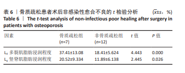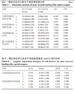 METHODS: A retrospective analysis was conducted on medical records of 4 368 patients who underwent traditional open posterior lumbar surgery at Third Affiliated Hospital of Guangzhou University of Chinese Medicine between 2019 and 2024. We screened 190 patients with a postoperative hospital stay of 15 days or longer. Based on postoperative wound healing and infection indicators, patients with non-infectious poor healing were identified from these 190 patients and placed in a poor healing group (41 patients). The remaining 4 178 surgical patients were screened and their medical records and blood tests were reviewed. Patients with good healing were selected and placed in a good healing group (40 patients). The non-infectious poor healing group was further divided into an osteoporosis group and a non-osteoporosis group. Preoperative lumbar MRI images were analyzed using ImageJ software to measure and calculate the cross-sectional area of the psoas major muscle and the percentage of fat infiltration in the erector spinae and multifidus muscles.