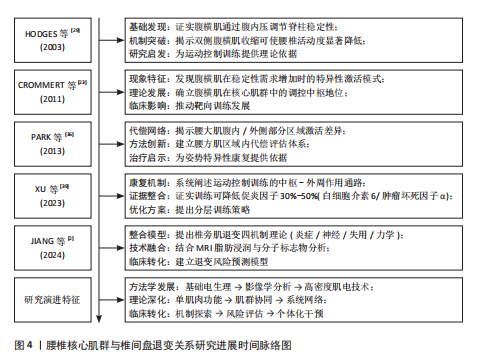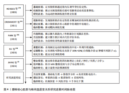 METHODS: A search was conducted in CNKI, WanFang, PubMed and Web of Science using a combination of MeSH terms (e.g., transversus abdominis[MeSH]) and free terms (e.g., TrA, IVDD) connected by Boolean operators (AND/OR) for muscle anatomical terms (transversus abdominis, gluteus maximus, etc.), disease terms (intervertebral disc degeneration, low back pain, etc.), and study types (RCT, cohort study, etc.). Ultimately, 61 articles were selected for analysis based on predefined criteria.