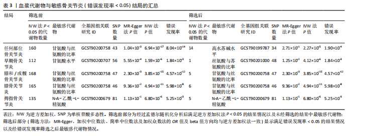 Abstract: BACKGROUND: In recent years, metabolic disorders have been confirmed to be closely related to the onset of osteoarthritis, but the causal relationship between plasma metabolites and osteoarthritis has not been systematically elucidated.