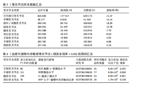 Key words: plasma metabolites, osteoarthritis, Mendelian randomization, instrumental variable, causality, pathogenesis