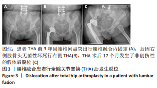 [10] ONGGO JR, NAMBIAR M, ONGGO JD, et al. Comparable dislocation and revision rates for patients undergoing total hip arthroplasty with subsequent or prior lumbar spinal fusion: a meta-analysis and systematic review. Eur Spine J. 2021;30(1):63-70.