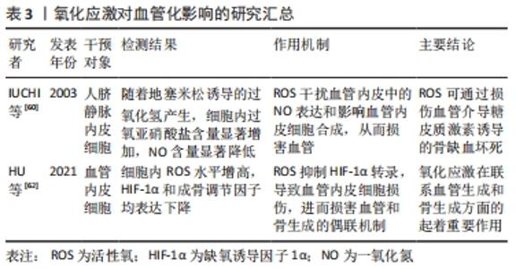 氧化应激对骨髓间充质干细胞的影响:骨髓间充质干细胞是一种多能性细胞,具有自我更新和多种分化潜能,它可以分化成软骨细胞、成骨细胞、脂肪细胞等多种细胞类型[28]。由于成骨细胞和脂肪细胞分化之间相互联系,骨髓间充质干细胞分化为一种谱系后逐渐丧失向另一种谱系分化的潜能[29]。 研究发现氧化应激诱导骨髓间充质干细胞凋亡,而使用青蒿素降低活性氧水平后,其活性得到改善[30]。此外,活性氧水平增加可诱导骨髓间充质干细胞线粒体功能障碍,促进细胞凋亡[31]。抑制活性氧生成还可促进骨髓间充质干细胞细胞周期,从而促进细胞增殖[32]。另有研究者使用白藜芦醇抑制内源性活性氧生成,发现其可促进衰老骨髓间充质干细胞的成骨分化[33]。因此,活性氧可通过诱导氧化应激,损害骨髓间充质干细胞抗氧化防御系统,对其活性、凋亡、增殖以及成骨分化产生不利影响。 氧化应激对骨细胞的影响:骨细胞是骨组织最丰富的细胞,在骨重建中发挥多种功能,包括调节成骨和破骨细胞吸收[34]。骨坏死本质上就是骨细胞的死亡,高剂量的糖皮质激素治疗增加了骨细胞凋亡[35-36],这是骨缺血坏死的重要原因[21]。骨细胞作为一种力学传感器,在骨损伤和修复中发挥作用,其丢失会破坏骨细胞-小管网络从而破坏骨结构,糖皮质激素可以通过改变骨细胞陷窝周围骨组织的弹性模量增加骨脆性,从而影响骨细胞功能[37]。在骨重塑过程中,细胞内氧化还原状态发生变化,氧化应激抑制骨细胞活性[17]。糖皮质激素处理骨细胞可显著提高细胞活性氧水平,清除活性氧则可阻止骨细胞凋亡[26]。WANG等[38]使用特立帕肽处理骨细胞,发现其可降低糖皮质激素增加的细胞活性氧水平,促进细胞增殖。由此可见,特立帕肽通过抑制活性氧在成骨过程中发挥着重要作用。此外,KAR等[39]发现,活性氧增加导致骨细胞自噬活性下降,自噬激活为细胞抗氧化应激提供了保护,抑制自噬增加了活性氧诱导的骨细胞死亡。这些研究说明氧化应激可影响骨细胞活性、增殖及自噬等,从而介导糖皮质激素诱导的骨细胞凋亡。 氧化应激对成骨细胞的影响:成骨细胞来源于间充质干细胞,对于维持骨量和骨骼发育是不可或缺的,可分化为骨细胞并调控骨基质矿化[40-41]。在激素型骨缺血坏死中,成骨细胞凋亡且功能减退,导致骨丢失[42]。暴露在地塞米松环境下,成骨细胞内活性氧水平增加,通过抑制碱性磷酸酶、成骨特异性转录因子(Runt-related transcription factor 2,RUNX2)、Ⅰ型胶原、骨形态发生蛋白2、骨连接素和骨钙素等多种成骨标志物的表达从而导致细胞功能障碍,引起细胞死亡[18,43]。活性氧清除剂通过消除体内活性氧的产生,逆转氧化应激诱导的成骨细胞凋亡[23-24],增加成骨细胞活性[44],并诱导前成骨细胞的分化[45]。PENG等[46]的研究发现,地塞米松引起活性氧水平增加促进了成骨细胞凋亡,使用N-乙酰半胱氨酸消除过量活性氧显著降低细胞凋亡比例。过多生成的活性氧损伤成骨细胞的脂质和蛋白质合成,不仅导致细胞损伤和凋亡[41],还会使得细胞周期阻滞且增殖能力下降[47]。此外,成骨细胞黏附有助于骨基质的合成和矿化[48],活性氧过度产生会损害这一过程[49]。综上,活性氧不仅可抑制成骨细胞的增殖与分化、降低成骨活性以及增加细胞凋亡,还可影响成骨矿化能力,最终导致成骨功能障碍、骨形成降低。 氧化应激对破骨细胞的影响:破骨细胞来自造血祖细胞,是造血前体细胞衍生的多核细胞,它具有骨吸收功能。形成成熟的破骨细胞需依赖于核因子κB受体活化因子配体(receptor activator of nuclear factor kappa B ligand,RANKL)[50]。破骨细胞的分化和活性可通过RANKL与核因子κB受体激活因子(receptor activator of nuclear factor Kappa B,RANK)相互作用来激活,介导骨吸收[51]。破骨细胞过度活跃是糖皮质激素诱导股骨头坏死的重要原因[52]。活性氧在破骨细胞的形成和骨吸收中起着至关重要的作用,其可以控制破骨细胞的分化成熟[53]。此外,活性氧可促进破骨细胞增殖[38]。研究发现,过氧化氢可显著增加破骨细胞数量和活性[54],而抗氧化剂则降低破骨细胞的分化和活性[17]。活性氧是骨丢失的关键要素,不管哪种活性氧清除剂都可以通过去除活性氧抑制破骨吸收。HAN等[55]使用三白草酮减少活性氧的产生,发现其显著降低与破骨相关基因如碳酸酐酶Ⅱ、基质金属蛋白酶9和抗酒石酸酸性磷酸酶表达水平,从而抑制破骨吸收。另有报道,百里醌可通过抑制活性氧生成,从而下调破骨相关基因抗酒石酸酸性磷酸酶、树突状细胞特异性跨膜蛋白等表达,抑制破骨细胞形成[56]。这些研究证实了活性氧可促进破骨细胞增殖、分化并增强其活性,从而促进破骨吸收,这可能是糖皮质激素诱导骨坏死的重要机制之一。因此,通过降低活性氧水平抑制破骨细胞增殖分化,最终起到修复坏死区骨组织的作用。 2.3.2 氧化应激对血管的影响 糖皮质激素诱导骨缺血坏死的两大基础是细胞凋亡和缺血[57]。血管作为营养提供者,它在骨组织中至关重要,并在骨重塑中发挥着重要作用。研究表明,血管异常导致血栓形成和栓塞,进而导致骨缺血坏死的发生[58]。另有研究表明,股骨头缺血坏死患者随着骨内压逐渐增高,窦道受压,静脉血管淤滞,最终引起动脉阻塞,导致骨缺血性坏死[59]。为了防止糖皮质激素诱导的骨缺血坏死,保护血管就显得非常重要。 活性氧不仅