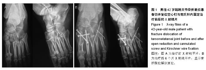 [7] 胡其恭,马琳,刘国江,等.探讨切开复位双重加压螺钉固定治疗跖跗关节损伤的临床疗效[J].中国社区医师,2014,30(8): 36,38.
