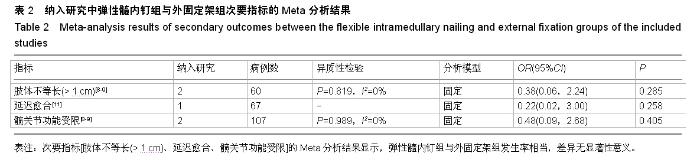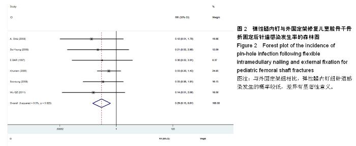 Guo Yong-cheng, Xing Guang-wei, Xia Bing, Feng Guo-ming, Dong Yan-zhao, Niu Xue-qiang, He Qian-yi. Meta-analysis of flexible intramedullary nailing and external fixation for pediatric femoral shaft fractures[J]. Chinese Journal of Tissue Engineering Research, 2015, 19(31): 5072-5078.