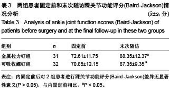 Yang Ning, Dou Qun-li, Yang Jin. Comparison of traditional metal pulling nail and macromolecule absorbable screw fixation in repair of unstable ankle fractures[J]. Chinese Journal of Tissue Engineering Research, 2015, 19(48): 7801-7805.