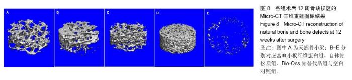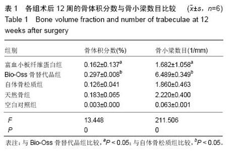 RESULTS AND CONCLUSION: (1) X-ray: the density of platelet-rich fibrin group was more higher, but still slightly lower than that of the surrounding normal bone tissue; the density of the Bio-Oss bone substitute group was more lower, but still higher than that of the surrounding bone tissues; the density of autologous cancellous bone group was more higher, which was close to that of the surrounding bone tissues; circular low-density images were visible in the control group. (2) Micro-CT: platelet-rich fibrin group was similar with the autogenous cancellous bone group, and their density was slightly lower than that of the surrounding normal bone tissues; the trabecular bone exlibited a clear regular arrangement, and no obvious interface; the Bio-Oss bone substitute group showed a high density image with clear interface; the bone defect area was still clearly visible in the control group, with a low-density image. The bone volume fraction and trabecular number in the platelet-rich fibrin and autologous cancellous bone groups were both higher than those in the Bio-Oss bone substitute group (P < 0.05). These results demonstrate that platelet-rich fibrin and autogenous cancellous bone have a similar bone repair effect.