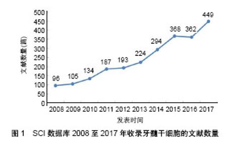 METHODS: The keyword of “dental pulp stem cells” in English and Chinese was used by the first author to retrieve relevant articles published from 2003 to 2018 in SCI, CNKI databases, Clinicaltrials.gov, and China patent database, respectively. These relevant literatures were statistically analyzed through the built-in analysis function and the drawing function of Excel software in terms of time distribution, country, regional distribution, organization