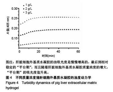 METHODS: Fresh frozen pig liver tissue sections were taken and placed in deionized water at room temperature for 4 times, transferred to 0.02% trypsin/0.05% EDTA solution preheated at 37 °C, stirred at 37 °C for 1 hour, and washed with deionized water, put into 3% Triton X-100 solution and stirred for 1.5 hours. The liver piece was rinsed with deionized water, stirred in 4% sodium deoxycholate solution for 1.5 hours, and rinsed with excess deionized water to obtain the decellularized liver scaffold. The liver scaffold was transferred into 0.1% peracetic acid solution and stirred for 2.0-3.0 hours, placed in 1×PBS solution for 15 minutes, stirred in deionized water for twice, rinsed in 1×PBS for 15 minutes, and then lyophilized and liquid nitrogen-milled. Digested into a liver matrix solution, and after subsequent trimming, the polypeptide molecules self-assemble into a liver matrix hydrogel. The degree of decellularization, DNA content, composition, turbidity dynamics and microstructure of the liver matrix hydrogel were examined.
