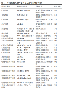 2.1 外泌体概述 外泌体最初被描述为是从肿瘤细胞系中释放出来的含有5'核苷酸酶活性的微泡[4]。1987年JOHNSTONE 等首次将这种从细胞内分泌出来的囊泡结构命名为外泌体。本质上,外泌体是在多囊泡内体的成熟过程中由内体膜以向内出芽的方式而形成的腔内囊泡[5],作为细胞、组织间信息交流的媒介,外泌体是多囊泡内体与细胞表面融合后向细胞外环境分泌而形成的[6]。此外,外泌体含有来自母细胞的大量丰富的活性物质,如蛋白质、脂质、核酸等各种分子,是一类呈现“杯状”或“茶托状”特征形态并具有细胞特异性脂质双分子层亚细胞结构的囊泡[7]。 外泌体普遍存在于不同类型的细胞中,包括网织红细 胞[8]、树突状细胞[9]、B细胞[10]、T细胞[11]、肥大细胞和肿瘤细胞等[12-13]。此外,在血液[14]、尿液[15]、羊水[16]、恶性腹水[17]、支气管肺泡灌洗液[18]、滑膜液和母乳等体液中也存在外泌体[19-20]。1996年RAPOSO等[21]发现外泌体具有抗原呈递并抑制肿瘤细胞的作用,之后外泌体更多的生物学功能被证明,包括介导细胞间通讯[22]、调节免疫反应[23]、癌症诊断等[24]。此后的研究逐渐发现外泌体在心脏保护中也具有重要作用。 2.2 外泌体作为心血管疾病诊断的生物标记物 2007年, VALADI等[25]首次在肥大细胞中发现外泌体含有miRNA,大量的细胞外miRNA被包裹在微小膜泡中(如外泌体),并证明外泌体被靶细胞摄取后,这些遗传内含物可发挥正常的生物学活性,由此掀起了对于它们在疾病治疗与预防及作为生物标志物的研究热潮。此后的研究发现,心脏特异性外泌体miRNA会在心肌受损后释放并进入血液循环,用于心血管疾病的监测。同理,心血管疾病患者血液外泌体miRNA水平变化也可作为研究心血管疾病潜在的生物标志物[26-27]。 由于外泌体miRNA的表达特异性,其作为心力衰竭、心肌梗死、围产期心肌病等多种心血管疾病的生物标志物在筛查和诊断中发挥着有益效应,而心肌细胞受损会释放富含心肌特异性的外泌体miRNA到体液中并以此作为心血管系统状态改变的信号[28]。研究发现,在急性心肌梗死时,与心肌肌钙蛋白(肌钙蛋白Ⅰ和肌钙蛋白T)相比,血液外泌体miR-1和miR-133a/b显示出更快且更早的适应性变化[29]。 MATSUMOTO等[30]提出了外泌体miRNA可作为缺血性心力衰竭的预测指标。研究发现,急性心肌梗死后发生心力衰竭患者体内的miR-192、miR-194和miR-34a浓度显著升高[31]。另一项重要实验表明,在接受心力衰竭治疗后,围产期心肌病患者的循环外泌体miR-146a水平降低,表明外泌体miR-146a 可能作为围产期心肌病相关急性心力衰竭的特异性生物标记物和治疗靶点,同一研究还发现了基于miRNA的细胞间通讯作用,即内皮细胞来源外泌体可携带miR-146a转移至心肌细胞,从而降低心肌细胞的代谢活性,导致发生围产期心肌病相关心力衰竭[32]。综上,外泌体miRNA水平变化与机体生理、病理条件密切相关,为外泌体在心血管疾病的诊断提供了理论基础。 2.3 不同细胞来源外泌体在心脏保护中的研究进展 外泌体自发现来,其初始研究主要集中于癌症的诊断,在近些年,外泌体已逐渐成为心血管疾病诊疗的研究热点。外泌体可被大多数细胞分泌(如心肌细胞、内皮细胞、心脏成纤维细胞、心脏祖细胞和间充质干细胞),这些细胞来源外泌体通过促进血管新生、抑制心肌纤维化、抑制心肌细胞凋亡、抑制炎症反应和改善心脏功能等方式在心脏保护中发挥重要作用。此外,外泌体中的miRNA和蛋白可调控生物信息,从而影响机体内各种生理病理进程,且不同来源外泌体具有不同的生物学功能。 2.3.1 心肌细胞来源的外泌体 在心肌细胞外泌体中不同的miRNA和蛋白发挥不同的心脏保护效应,如促进血管新生、抑制心肌细胞凋亡和抑制心肌纤维化等作用。此外,心肌细胞与其他细胞间(如内皮细胞)的通讯作用也在心脏保护中极为重要。 (1)促进血管新生:心肌细胞与内皮细胞之间的通讯与调节心脏功能关系密切并发挥重要的作用。RIBEIRO-RODRIGUES 等[33]通过研究首次表明在缺血条件下心肌细胞通过释放外泌体影响内皮细胞功能并促进血管生成,在缺血状态下心肌细胞来源外泌体促血管生成的主要特征包括内皮细胞的迁移、发芽和毛细血管样结构的形成,随后通过定量聚合酶链反应定量到外泌体中最丰富的miR-143和miR-222,发现心肌细胞在缺血状态分泌的外泌体在体外和体内均可促进血管生成,说明不同细胞间的通讯转导广泛参与血管生成的调节。 (2)抑制心肌细胞凋亡:心肌细胞会释放出大量特异性外泌体以应对缺血缺氧状态下的应激反应,抑制心肌细胞凋亡,而外泌体中的蛋白质也已成为心脏保护研究的新靶点。GUPTA等[34-35]首次分离出成年大鼠心肌细胞释放的含有热休克蛋白60的心肌细胞外泌体;在低氧条件下,热休克蛋白60紧密附着于心肌细胞外膜上,然后作为屏障将心肌细胞与细胞外空间中高水平的热休克蛋白60蛋白隔离,从而抑制心肌细胞凋亡并降低心肌细胞的毒性,这项研究阐述了热休克蛋白60作为心肌细胞来源外泌体靶点在心脏保护中的新机制。 (3)抑制心肌纤维化:血管紧张素Ⅱ水平上升会诱导心力衰竭并加重心血管相关疾病的进程,而心肌细胞来源外泌体可调节相关炎性因子的表达从而抑制心肌纤维化。 CAMBIER等[36]研究了心肌细胞来源外泌体在长期注射血管紧张素Ⅱ诱导的心肌肥大和肾脏损伤模型中的作用,