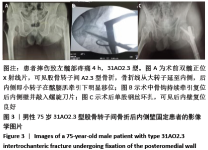 Abstract: BACKGROUND: Elderly with femoral intertrochanteric fractures experienced more adverse events after surgical treatment, such as such as coxa vara, screw penetration, and hip pain. In recent years, study on the posterior medial wall of intertrochanteric femur has been deepened. The reconstruction and fixation of the posteromedial wall have gradually been used in clinical work.