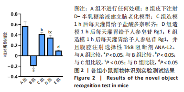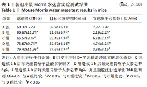 Yang Yazhu, Du Juan, Qu Haifeng, Li Jianmin, Zhang Yuxin, Liu Junjie. Effect of ginsenoside Rg1 on learning and memory ability of brain aging mice induced by D-galactose[J]. Chinese Journal of Tissue Engineering Research, 2023, 27(28): 4487-4493.
