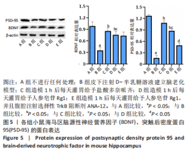 [1] 林江涛,丁悦敏,张雄.PSD-95与老化相关学习记忆能力下降关系研究进展[J].生物学杂志,2019,36(2):83-85+89. [2] MEDINA JH. Neural, Cellular and Molecular Mechanisms of Active Forgetting. Front Syst Neurosci. 2018;12:3. [3] 付燕,王璐,李雪,杨澎湃,等.有氧运动对D-gal致脑衰老过程中大鼠学习记忆能力及PSD-95的影响[J].武汉体育学院学报,2016, 50(8):87-93. [4] NUMAKAWA T, ODAKA H. Brain-Derived Neurotrophic Factor Signaling in the Pathophysiology of Alzheimer’s Disease: Beneficial Effects of Flavonoids for Neuroprotection. Int J Mol Sci. 2021;22(11):5719. [5] 王子礼,陈显兵,王凤杰,等.头顶一颗珠对衰老大鼠认知及海马BDNF、TrkB的影响[J].中国中西医结合杂志,2020,40(11):1373-1377. [6] 张爽. BDNF基因修饰神经干细胞对Aβ致伤PC12神经元ERK1/2和PSD-95表达的影响[D].佳木斯:佳木斯大学,2016. [7] 杨雄,楚世峰.人参皂苷Rg1和Rb1在神经退行性疾病治疗中的作用[J].神经药理学报,2018,8(6):56-57. [8] GUO Y, WANG L, LU J, et al. Ginsenoside Rg1 improves cognitive capability and affects the microbiota of large intestine of tree shrew model for Alzheimer’s disease. Mol Med Rep. 2021;23(4):291. [9] LOU YX, WANG ZZ, XIA CY, et al. The protective effect of ginsenoside Rg1 on depression may benefit from the gap junction function in hippocampal astrocytes. Eur J Pharmacol. 2020;882:173309. [10] 杜姝,姜岩,刘晶,等.人参皂苷Rg1对癫痫大鼠海马神经元损伤和小胶质细胞活化的影响[J].免疫学杂志,2021,37(3):202-209. [11] YANG C, HE X, ZHAO J, et al. Hepatoprotection by Ginsenoside Rg1 in alcoholic liver disease. Int Immunopharmacol. 2021;92:107327. [12] KIM JH, YI YS, KIM MY, et al. Role of ginsenosides, the main active components of Panax ginseng, in inflammatory responses and diseases. J Ginseng Res. 2017;41(4):435-443. [13] SHAO J, ZHENG X, QU L, et al. Ginsenoside Rg5/Rk1 ameliorated sleep via regulating the GABAergic/serotoninergic signaling pathway in a rodent model. Food Funct. 2020;11(2):1245-1257. [14] 徐谈震. NOX2-NLRP1信号通路在小鼠脑老化损伤中的作用及人参皂苷Rg1的调节作用[D].合肥:安徽医科大学,2019. [15] 沈晓燕.NOX4-NLRP3信号通路在小鼠肾脏老化损伤中的作用及人参皂苷Rg1的调节作用[D].合肥:安徽医科大学,2020. [16] 杨璐萌.人参皂苷Rg1延长C57BL/6J小鼠寿命及延缓脑老化的机制研究[D].福州:福建医科大学,2013. [17] XIANG Y, WANG SH, WANG L, et al. Effects of Ginsenoside Rg1 Regulating Wnt/β-Catenin Signaling on Neural Stem Cells to Delay Brain Senescence. Stem Cells Int. 2019;2019:5010184. [18] 许方方,张珊,李建玲,等.人参皂苷Rb1对阿尔茨海默病模型小鼠术后认知功能、海马内突触后致密蛋白-95及尼氏体表达的影响[J].中西医结合心脑血管病杂志,2022,20(3):440-444. [19] 王冬慧,武鑫,孙宁宁,等.电针干预放射性脑损伤小鼠海马区突触可塑性相关蛋白的表达[J].中国组织工程研究,2021,25(14): 2205-2210. [20] 田勇,周督,邹双忆,等.昆仑雪菊水溶性黄酮提取物对D-半乳糖致衰老小鼠学习记忆障碍的改善作用[J].食品科学,2019,40(1):162-168. [21] 翟春梅,薛迎凤,郭鹏飞,等.白术对D-半乳糖致衰老小鼠学习记忆和抗氧化能力的影响[J].中医药学报,2021,49(7):26-31. [22] 李斌,李佳欣,郝彦伟,等.远志散对阿尔茨海默病模型小鼠学习记忆能力及海马紧密连接蛋白表达的影响[J].中医杂志,2022,63(6): 557-563. [23] 吕静薇.人参皂苷Rg1和Rb1改善航天失重效应与睡眠干扰所致认知功能减退作用及机制研究[D].北京:北京协和医学院,2021. [24] 赵佳佳,杨荷雨,王招娣,等.ANA-12通过靶向阻断BDNF/TrkB信号通路降低大鼠的脊髓炎症和缓解病理性疼痛[J].南方医科大学学报,2022,42(2):232-237. [25] 陈晓禾.海马组织MAD2B过表达对小鼠学习记忆能力影响及机制研究[D].武汉:华中科技大学,2019. [26] Li M, Zhao J, Tang Q, et al. Lamivudine improves cognitive decline in SAMP8 mice: Integrating in vivo pharmacological evaluation and network pharmacology. J Cell Mol Med. 2021;25(17):8490-8503. [27] ZIA A, POURBAGHER-SHAHRI AM, FARKHONDEH T, et al. Molecular and cellular pathways contributing to brain aging. Behav Brain Funct. 2021;17(1):6. [28] LIU N, ZENG L, ZHANG YM, et al. Astaxanthin alleviates pathological brain aging through the upregulation of hippocampal synaptic proteins. Neural Regen Res. 2021;16(6):1062-1067. [29] 赵思琦,杜鹃,屈海峰,等.丰富环境联合褪黑素对SAMP8小鼠学习记忆功能及脑神经细胞凋亡的影响[J].中国组织工程研究, 2023,27(5):701-706. [30] HAIDER S, LIAQUAT L, SHAHZAD S, et al. A high dose of short term exogenous D-galactose administration in young male rats produces symptoms simulating the natural aging process. Life Sci. 2015;124: 110-119. [31] 王钊.生物衰老:研究方法与实验方案[J].遗传,2012,34(11):1364. [32] LU S, ZHANG Y, LI H, et al. Ginsenoside Rb1 can ameliorate the key inflammatory cytokines TNF-α and IL-6 in a cancer cachexia mouse model. BMC Complement Med Ther. 2020;20(1):11. [33] LI X, GUAN J, SUN T, et al. Circadian learning and memory changes in Aβ1-42 induced Alzheimer’s mice. Metab Brain Dis. 2020;35(3):463-471. [34] VANGUILDER HD, FARLEY JA, YAN H, et al. Hippocampal dysregulation of synaptic plasticity-associated proteins with age-related cognitive decline. Neurobiol Dis. 2011;43(1):201-212. [35] WANG M, LIU JX, YAO MJ, et al. [Advances in research on pharmacological and neuroprotective effects of traditional Chinese medicine after cerebral ischemia]. Zhongguo Zhong Yao Za Zhi. 2020; 45(3):513-517. [36] LIAO S, APAIJAI N, CHATTIPAKORN N, et al. The possible roles of necroptosis during cerebral ischemia and ischemia / reperfusion injury. Arch Biochem Biophys. 2020;695:108629. [37] GUO X, YUAN J, LI M, et al. Neuroprotection