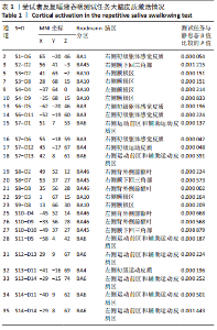 RESULTS AND CONCLUSION: During the repetitive saliva swallowing test, the bilateral primary somatosensory cortex, bilateral primary motor cortex, bilateral pre-motor and supplementary motor cortex, bilateral pars triangularis, bilateral frontopolar area, and bilateral dorsolateral prefrontal cortex were significantly activated. More than half of the subjects had cortical hemispheric lateralization in the repetitive saliva swallowing test, but there was greater variability in hemispheric lateralization and no significant association with subject’s handedness. The use of healthy adults as subjects in this study to explore the activated areas associated with swallowing allows us to more accurately understand the neural activity during swallowing, which is important for further investigation of swallowing dysfunction.