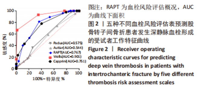 Key words: deep venous thrombosis, intertrochanteric fracture of femur, rating scale, predictive value, receiver operating characteristic curve, risk assessment