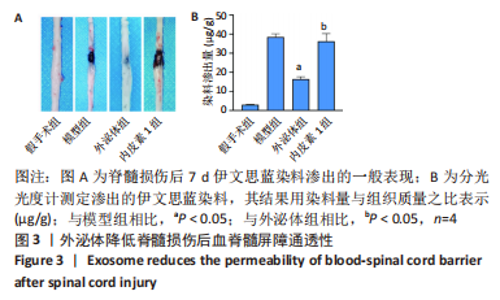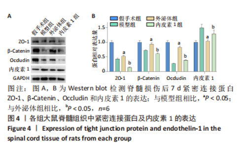 | [1] KUMAR R, LIM J, MEKARY RA, et al. Traumatic Spinal Injury: Global Epidemiology and Worldwide Volume. World Neurosurg. 2018;113: e345-e363. [2] FAN B, WEI Z, YAO X, et al. Microenvironment Imbalance of Spinal Cord Injury. Cell Transplant. 2018;27(6):853-866. [3] TAKAHASHI A, NAKAJIMA H, UCHIDA K, et al. Comparison of Mesenchymal Stromal Cells Isolated from Murine Adipose Tissue and Bone Marrow in the Treatment of Spinal Cord Injury. Cell Transplant. 2018;27(7):1126-1139. [4] MATSUSHITA T, LANKFORD KL, ARROYO EJ, et al. Diffuse and persistent blood-spinal cord barrier disruption after contusive spinal cord injury rapidly recovers following intravenous infusion of bone marrow mesenchymal stem cells. Exp Neurol. 2015;267:152-164. [5] ABBASZADEH HA, NIKNAZAR S, DARABI S, et al. Stem cell transplantation and functional recovery after spinal cord injury: a systematic review and meta-analysis. Anat Cell Biol. 2018;51(3):180-188. [6] WANG C, SHI D, SONG X, et al. Calpain inhibitor attenuates ER stress-induced apoptosis in injured spinal cord after bone mesenchymal stem cells transplantation. Neurochem Int. 2016;97:15-25. [7] 张勇,马迅,孙麟,等.人脐带间充质干细胞来源外泌体减轻大鼠脊髓星形胶质细胞氧糖剥夺/复氧损伤所致的水肿[J].中国组织工程研究,2019,23(25):4011-4017. [8] SUN G, LI G, LI D, et al. hucMSC derived exosomes promote functional recovery in spinal cord injury mice via attenuating inflammation. Mater Sci Eng C Mater Biol Appl. 2018;89:194-204. [9] LIU W, WANG Y, GONG F, et al. Exosomes Derived from Bone Mesenchymal Stem Cells Repair Traumatic Spinal Cord Injury by Suppressing the Activation of A1 Neurotoxic Reactive Astrocytes. J Neurotrauma. 2019;36(3):469-484. [10] MCKENZIE AL, HALL JJ, AIHARA N, et al. Immunolocalization of endothelin in the traumatized spinal cord: relationship to blood-spinal cord barrier breakdown. J Neurotrauma. 1995;12(3):257-268. [11] SALZMAN SK, ACOSTA R, BECK G, et al. Spinal endothelin content is elevated after moderate local trauma in the rat to levels associated with locomotor dysfunction after intrathecal injection. J Neurotrauma. 1996;13(2):93-101. [12] 姜亮,刘忠军,党耕町.内皮素在急性脊髓损伤中的变化[J].中华骨科杂志,1998,18(10):594-597. [13] 刘明明,程建,马勇,等.脊髓损伤后血脊髓屏障病变机制研究进展[J].安徽医科大学学报,2015,50(12):1827-1830. [14] 彭新生,李佛保,潘滔,等.内皮素与脊髓损伤后血脊屏障损害的关系[J].中国脊柱脊髓杂志,2000,10(5):280-282. [15] REN ZW, ZHOU JG, XIONG ZK, et al. Effect of exosomes derived from MiR-133b-modified ADSCs on the recovery of neurological function after SCI. Eur Rev Med Pharmacol Sci. 2019;23(1):52-60. [16] HUANG JH, YIN XM, XU Y, et al. Systemic Administration of Exosomes Released from Mesenchymal Stromal Cells Attenuates Apoptosis, Inflammation, and Promotes Angiogenesis after Spinal Cord Injury in Rats. J Neurotrauma. 2017;34(24):3388-3396. [17] KORNILOV R, PUHKA M, MANNERSTRÖM B, et al. Efficient ultrafiltration-based protocol to deplete extracellular vesicles from fetal bovine serum. J Extracell Vesicles. 2018;7(1):1422674. [18] HU Y, RAO SS, WANG ZX, et al. Exosomes from human umbilical cord blood accelerate cutaneous wound healing through miR-21-3p-mediated promotion of angiogenesis and fibroblast function. Theranostics. 2018;8(1):169-184. [19] FRANZEN CA, BLACKWELL RH, TODOROVIC V, et al. Urothelial cells undergo epithelial-to-mesenchymal transition after exposure to muscle invasive bladder cancer exosomes. Oncogenesis. 2015;4(8):e163. [20] EKSTRÖM EJ, BERGENFELZ C, VON BÜLOW V, et al. WNT5A induces release of exosomes containing pro-angiogenic and immunosuppressive factors from malignant melanoma cells. Mol Cancer. 2014;13:88. [21] 周燕,王琳,裴双,等.骨髓间充质干细胞外泌体可减少脊髓损伤后A1型星形胶质细胞的活化[J].中国组织工程研究,2019,23(21): 3294-3301. [22] RONG Y, LIU W, LV C, et al. Neural stem cell small extracellular vesicle-based delivery of 14-3-3t reduces apoptosis and neuroinflammation following traumatic spinal cord injury by enhancing autophagy by targeting Beclin-1. Aging (Albany NY). 2019;11(18):7723-7745. [23] BASSO DM, BEATTIE MS, BRESNAHAN JC. A sensitive and reliable locomotor rating scale for open field testing in rats. J Neurotrauma. 1995;12(1):1-21. [24] 胡伟,谢兴奇,屠冠军.骨髓间充质干细胞来源外泌体改善脊髓损伤后血脊髓屏障的完整性[J].中国组织工程研究,2022,26(7):992-998. [25] JIN LY, LI J, WANG KF, et al. Blood-Spinal Cord Barrier in Spinal Cord Injury: A Review. J Neurotrauma. 2021;38(9):1203-1224. [26] MANNELLO F, GAZZANELLI G. Tissue inhibitors of metalloproteinases and programmed cell death: conundrums, controversies and potential implications. Apoptosis. 2001;6(6):479-482. [27] BARTANUSZ V, JEZOVA D, ALAJAJIAN B, et al. The blood-spinal cord barrier: morphology and clinical implications. Ann Neurol. 2011;70(2):194-206. [28] FIGLEY SA, KHOSRAVI R, LEGASTO JM, et al. Characterization of vascular disruption and blood-spinal cord barrier permeability following traumatic spinal cord injury. J Neurotrauma. 2014;31(6):541-552. [29] ZHENG B, YE L, ZHOU Y, et al. Epidermal growth factor attenuates blood-spinal cord barrier disruption via PI3K/Akt/Rac1 pathway after acute spinal cord injury. J Cell Mol Med. 2016;20(6):1062-1075. [30] YE LB, YU XC, XIA QH, et al. Erratum to: Regulation of Caveolin-1 and Junction Proteins by bFGF Contributes to the Integrity of Blood-Spinal Cord Barrier and Functional Recovery. Neurotherapeutics. 2017;14(3):828-829. [31] FlACK JA, SHARMA KD, XIE JY. Delving into the recent advancements of spinal cord injury treatment: a review of recent progress. Neural Regen Res. 2022;17(2):283-291. [32] CHEN X, LAN X, ROCHE I, et al. Caffeine protects against MPTP-induced blood-brain barrier dysfunction in mouse striatum. J Neurochem. 2008;107(4):11