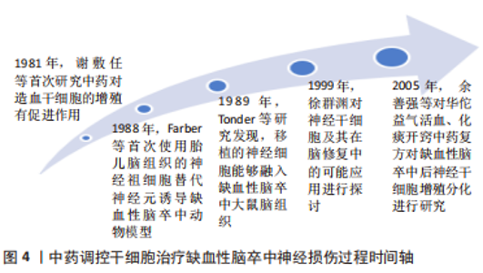 补阳还五汤:中药复方补阳还五汤主要成分有黄芪、赤芍、川芎、当归尾、地龙、桃仁、红花,乃益气活血经典名方。张运克等[98]研究证实,益气活血方补阳还五汤联合骨髓间充质干细胞治疗能显著增加缺血性脑卒中大鼠模型体内神经元细胞NSE表达和细胞轴突GFAP蛋白表达,促进骨髓间充质干细胞向神经元方向分化。此外, 张运克等[99]研究发现,补阳还五汤治疗能显著上调抗凋亡因子Bcl-2表达,下调Bax表达,增加Bcl-2/Bax比率,抑制缺血性脑卒中急性期神经细胞凋亡,促进神经细胞存活。另有研究证实,补阳还五汤联合间充质干细胞治疗能够上调MCAO大鼠VEGF表达,诱导缺血区血管再生,促进神经发生;且补阳还五汤联合骨髓间充质干细胞治疗能够增加Occludin、Claudin、JAM-A、ZO-1蛋白表达,协同促进血脑屏障修复与神经修复[100-101]。 脑脉通:中药复方脑脉通主要有效成分有人参、川芎、大黄、葛根,冯静静等[102]发现,益气活血开窍类中药复方脑脉通联合骨髓间充质干细胞能够显著增加脑缺血再灌注大鼠脑内Nestin表达,促进神经再生。 麝香黄芪复方滴丸:麝香黄芪复方滴丸是在补阳还五汤原方基础上加入芳香开窍药麝香、冰品化裁而成。张运克等[103-104]研究证实,益气活血开窍中药复方麝香黄芪复方滴丸显著上调缺血性脑卒中大鼠模型缺血区域Occludin、Claudin-5、JAM-A、ZO-1的蛋白表达,维持血脑屏障紧密连接完整性,发挥脑保护作用。 三化汤:三化汤主要由大黄、枳实、羌活、厚朴组成,共奏通腑开窍之功用。FU等[105]发现,三化汤治疗可显著降低再灌注后p-tau蛋白水平,而t-tau蛋白和mRNA水平无明显变化,提示三化汤通过减少tau磷酸化发挥神经保护和促进神经发生的作用;且三化汤能够在缺血性脑卒中急性期上调齿状回的颗粒下区神经细胞和星形胶质细胞数量,促进神经前体细胞向未成熟神经元分化。 健脾益智胶囊:中药复方健脾益智胶囊主要由人参、黄芪、白术、制何首乌、菖蒲、远志、水蛭组成,具有健脾益气、活血开窍之功效[106]。冯珂等[107]发现,健脾益智胶囊能够明显提高MCAO大鼠Notch1、Jagged1蛋白表达及其基因的表达,以及提高Notch下游靶向蛋白Hes1的表达,激活Notch促进MCAO大鼠海马神经干细胞增殖。且健脾益智胶囊能够显著增强缺血性脑卒中模型大鼠体内碱性成纤维细胞生长因子2、BDNF、表皮生长因子的表达,促进神经干细胞的增殖、分化[108]。 白脉散:蒙药白脉散是由人参、牛黄、冰片等19味药物组成的治疗中风的民族方药,陈小玉[109]研究发现,白脉散能够增强双侧颈总动脉夹闭模型小鼠脑内Notch1基因表达,激活Notch通路,提高神经干细胞增殖活性。 益气活血方:益气活血方主要成分为黄芪、三七、川芎、红花,孟庆萍等[110]证实益气活血方能够上调MCAO大鼠模型缺血侧额顶叶皮质Hes-1和Hes-5蛋白表达,增强Notch信号转导通路Hes-1和Hes-5效应分子活性功能,促进脑缺血损伤后内源性神经干细胞增殖。 保元胶囊:中药复方保元胶囊主要成分有黄芪、丹参、猪苓、枸杞等,具有益气养血活血之功效。DU等[111]发现,保元胶囊能够上调海马中p-Akt、p-GSK-3β和AMPK的表达,并下调β-catenin,调节PI3K-Akt信号通路促进神经干细胞增殖;且保元胶囊能够呈剂量依赖性地增加MCAO小鼠脑内ATP和AMP含量,降低神经干细胞中的ADP含量,增强Akt和p-GSK3β的磷酸化,促进神经干细胞向神经元方向分化。 芪仙通络方:芪仙通络方为国医大师刘祖贻治疗缺血性脑卒中之经验方,由黄芪、丹参、水蛭、山楂、葛根、淫羊藿、枸杞子、制首乌共同组成,具有补肾益气、活血通络之功效,寿雅琨[112]研究证实,芪仙通络方能够明显上调BDNF表达和p-CREB表达,促进TrkB磷酸化,促进神经细胞增殖与突触重构。林秀慧等[113]研究发现,芪仙通络方能够显著上调缺血性脑卒中急性期VEGF表达,增加梗死灶周围新生微血管数量,促进神经修复。另有研究证实,芪仙通络方能够上调缺血性脑卒中大鼠脑内BDNF水平,促进其内源性神经发生[114]。 脑疏宁:脑疏宁由益母草、川牛膝、三七、白茅根、生大黄、连翘、水蛭、石菖蒲共同组成,具有益气活血、通腑开窍之功效。荆莉等[115]证实,脑疏宁能够增加体外培养的神经干细胞p-ERK1/2蛋白表达,促进ERK1/2磷酸化,激活ERK/MAPK信号通路,促进神经干细胞的增殖。 银杏活脑胶囊:鲁启洪[116]研究发现,银杏活脑胶囊能够显著上调缺血性脑卒中急性期VEGF表达,增加梗死灶周围新生微血管数量,促进神经修复。 肾脑复元汤:益气补肾、活血通络中药复方肾脑复元汤联合人脐带间充质干细胞治疗能够明显抑制缺血缺氧后线粒体cyt-C释放,减少Caspase-9、Caspase-3表达,发挥脑保护作用[117]。胡国恒等[118]证实,肾脑复元汤联合人脐带间充质干细胞治疗能够增强MCAO大鼠VEGF表达,显著改善神经功能损伤。李映辰等[119]研究发现,肾脑复元汤联合人脐带间充质干细胞移植治疗,能够有效促进脑缺血再灌注后损伤大鼠脑内神经营养因子BDNF及碱性成纤维细胞生长因子表达。"