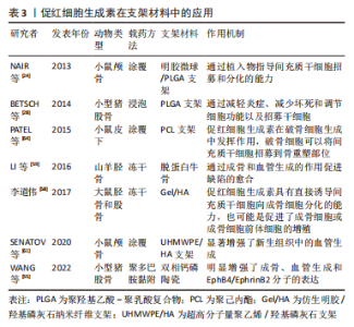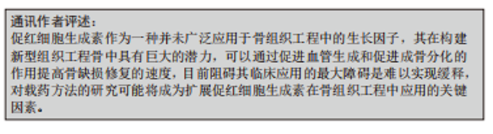 作为材料改性的基本方法,涂覆和浸泡是生物支架负载促红细胞生成素的传统方式,不同的研究者都通过涂覆或浸泡的方式构建了不同生物支架负载促红细胞生成素的新型组织工程骨并取得了良好的骨缺损修复效果[24,28,61-63]。然而,传统的涂覆或浸泡方式仍存在着促红细胞生成素的释放速度过快,无法实现缓释的缺点。为了解决这一问题,WANG等[55]利用聚多巴胺(polydopamine,pDA)的仿贻贝黏附特性将促红细胞生成素成功接枝在双相钙磷陶瓷(biphasic calcium phosphate,BCP)表面,通过材料表面的PDA涂层成功实现了促红细胞生成素在支架材料表面的缓释。顾中一[56]通过把促红细胞生成素引入到壳聚糖水凝胶体系中,利用壳聚糖水凝胶的特性阻止促红细胞生成素的突释。KARPOV等[57]成功将促红细胞生成素掺入静电纺丝支架中,实验结果表明静电纺丝明显改善了促红细胞生成素的释放方式,释放的时间显著延长。李道伟[58]尝试通过冻干的方法制备仿生明胶/羟基磷灰石(gelatin/hydroxyapatite,Gel/HA)纳米纤维支架,将促红细胞生成素直接与纤维支架复合,结果发现促红细胞生成素释放仍呈现明显的突释现象,仅有少量促红细胞生成素存留于支架内缓慢释放,尽管其对骨缺损修复仍有良好的效果,却未能实现促红细胞生成素的缓释。 2.3.2 促红细胞生成素在骨组织工程中的作用及潜在机制 (1)促红细胞生成素在骨组织工程中的促血管生成作用:作为促红细胞生成素的经典生物学作用,促血管生成是促红细胞生成素在其参与构建的新型组织工程骨中不可或缺的基本功能,多个研究者通过各种不同的生物支架及动物模型均证实了促红细胞生成素在骨组织工程中这一功能的存在。有研究建立山羊缺陷模型,将负载人重组促红细胞生成素的DBB支架填充于缺损处,与纯DBB支架相比,DBB/人重组促红细胞生成素组更明显地通过其成骨和血管生成的作用促进骨缺陷的愈合,其中血管内皮生长因子可能是促红细胞生成素介导的血管生成作用的重要下游信号分子[59]。有研究指出促红细胞生成素可以刺激骨髓内皮祖细胞迁移、聚集到血管形成部位,并分化为血管内皮细胞,血管内皮生长因子等促血管形成因子的分泌,从而促进血管形成和牙周组织再生[60]。有研究于2020年在小鼠颅骨缺损模型中应用促红细胞生成素参与构建的超高分子量聚乙烯/羟基磷灰石(ultra-high molecular weight polyethylene/hydroxyapatite,UHMWPE/HA)支架[61],发现新生骨组织中的血管生成明显增多,尽管该文作者并未深入阐述其分子生物学机制,其实验结果仍证实了促红细胞生成素通过血管生成促进骨缺损愈合的作用。该课题组团队在2022年的研究中也发现促红细胞生成素负载后的BCP陶瓷不仅对大鼠股骨缺损的修复效果更明显[55],其骨缺损区域的新生血管数量与BCP陶瓷相比也显著增多,免疫组织化学染色的结果提示促红细胞生成素的应用上调了EphrinB2和EphB4蛋白的表达,表明EphrinB2/EphB4可能是促红细胞生成素构建的组织工程骨血管生成作用的可能机制。在LI等[50]应用促红细胞生成素构建新型明胶微球的研究中,缺氧诱导因子1α/血管内皮生长因子信号通路也被证明参与了促红细胞生成素促进成骨成血管的过程。然而,Wnt/β-catenin及p38 MAPK等在促红细胞生成素促进成骨中发挥作用的信号通路却未出现在促红细胞生成素构建的新型组织工程骨促进骨缺损愈合的研究中,其在促红细胞生成素相关的骨组织工程中的具体机制尚需进一步证实。 (2)促红细胞生成素在骨组织工程中对间充质干细胞的募集和促成骨分化作用:以往的研究者除了关注促红细胞生成素经典的促血管生成作用外,也注意到了促红细胞生成素在骨组织工程中直接促进间充质干细胞募集和成骨分化的作用。有研究构建了负载促红细胞生成素的明胶微球/PLGA支架,将其植入小鼠颅骨,观察到新骨形成几乎完全(超过80%)覆盖了骨缺损区域,并发现在这一过程中促红细胞生成素促进了不同程度的间充质干细胞募集,并在间充质干细胞的成骨向分化中扮演了不可或缺的角色[24]。在顾中一[56]将促红细胞生成素引入壳聚糖水凝胶体系的研究中,牙周炎+促红细胞生成素组和牙周炎+载促红细胞生成素水凝胶组牙周组织再生明显,炎细胞浸润显著减轻,此作用与 促红细胞生成素促进间充质干细胞成骨向分化、抑制破骨细胞的功能有关。李道伟[58]的研究中也发现了类似的结果,促红细胞生成素能够显著促进间充质干细胞的成骨向分化。促红细胞生成素的这一生物学作用不仅局限于骨,在软骨中也有着类似的发现。BETSCH等[28]的研究中,将PLGA支架作为载体负载促红细胞生成素,在小型猪软骨缺损中获得了理想的成骨效果,结果显示促红细胞生成素在减轻炎症、减少坏死、调节细胞功能以及招募间充质干细胞方面均发挥了作用,从不同方面促进了软骨缺损的愈合过程。 2.3.3 促红细胞生成素与其他生长因子的共同作用 促红细胞生成素还可与其他生物因子共同作用构建新型组织工程骨。骨形态发生蛋白是转化生长因子超家族中的成员,能诱导间充质干细胞向成骨及软骨细胞分化,对其他骨组织工程种子细胞也有同样的诱导作用。SUN等[62]使用颅骨缺损模型确定了促红细胞生成素在骨形态发生蛋白2诱导的骨再生中的作用,结果显示对照组和促红细胞生成素治疗组没有明显的骨形成,尽管在缺损区域的中部观察到一