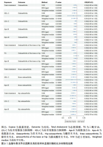 Abstract: BACKGROUND: Osteoarthritis is a complex disease closely related to metabolic abnormalities. However, previous studies only involved limited blood lipid indicators and did not conduct more comprehensive blood lipid profile analysis. An in-depth exploration of the causal relationship between the seven items of blood lipids and osteoarthritis will not only help understand the pathogenesis of osteoarthritis, but also provide new research directions and clinical basis for its prevention and treatment.
