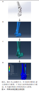 2.1 模型构建 有限元模型建立工作流程如图4所示。有限元建模的第一步是获取高质量的医学图像数据。X射线片、超声波、CT和MRI被广泛用于检测骨、关节和软组织。由于有限元模型的建立涉及到组织的三维重建,因此CT和MRI是有限元建模的主要图像数据来源。CT和MRI扫描参数与有限元的精细程度密切相关。CT和MRI的层厚通常为1 mm,最薄的CT层厚为0.5 mm。 CT图像能清晰显示骨组织的形态和病变,但软组织显示不佳。基于CT图像,研究人员通常构建股骨、髌骨、胫骨和腓骨等骨结构的有限元模型[14]。MRI图像可以清晰地显示软骨和软组织形态,用于构建软骨、韧带和肌腱的有限元模型[15],但通过MRI获得的骨组织模型不如通过CT扫描获得的模型精细。考虑到CT的辐射,一些研究者在对儿童骨组织进行有限元建模时,选择MRI来勾勒骨骼的形态[16]。CT和MRI机器的参数设置不同,如果将提取的3D结构直接连接在一起,会影响模型的准确性。一些研究人员在志愿者的踝关节上放置外部参考点,以匹配CT和MRI图像,然后通过解剖学结合踝关节的不同结构。大多数组织模型需要由专业人员使用Mimics等图像处理软件在图像上手动勾勒出轮廓,然后导入到ABAQUS、ANSYS等有限元分析软件中进行计算[17],在这个分析计算过程中,可以得到应力等参数。研究人员通过使用深度学习在踝关节MRI的诊断中,从而显著提高了模型构建的效率[18]。同样,YIN等[19]提出了一种基于Python的自动图像分割方法,获得的骨骼和软骨与手动轮廓相比误差在0.2 mm以内。一般来说,有限元轮廓需要基于高质量的图像,依赖于高性能的计算机和相关软件进行图像处理和有限元分析,半自动或全自动的有限元分割可能是一个潜在的发展方向。踝关节有限元模型构建方法对比见表1。"
