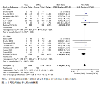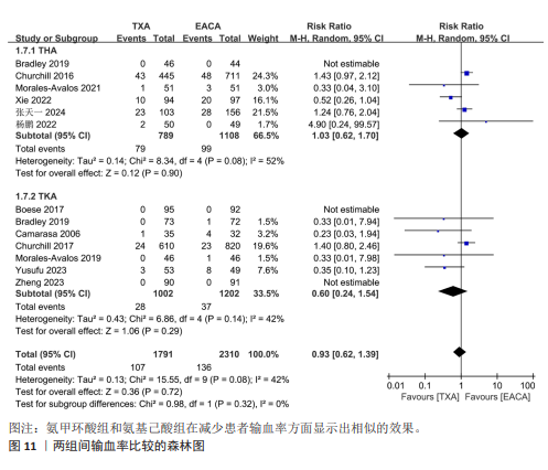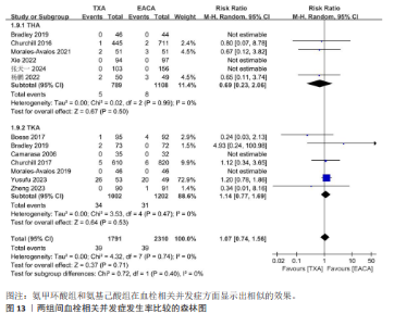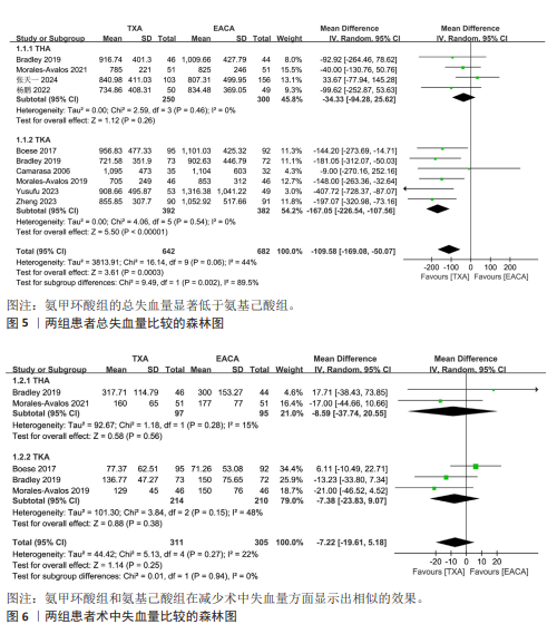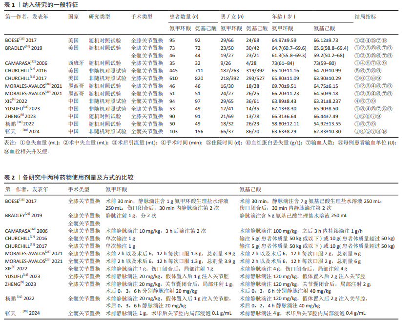 METHODS: Published studies on the perioperative application of tranexamic acid and epsilon-aminocaproic acid in total knee arthroplasty or total hip arthroplasty were identified from the following electronic databases: PubMed, Embase, Web of Science, Cochrane Library, CNKI, WanFang, VIP, and SinoMed from inception until November 1, 2024. After removing duplicate references, two researchers conducted literature screening and data extraction based on predefined inclusion and exclusion criteria. Statistical analysis of total blood loss, transfusion rate, incidence of deep venous thrombosis, and other relevant indicators was performed using Review Manager 5.3 software.
