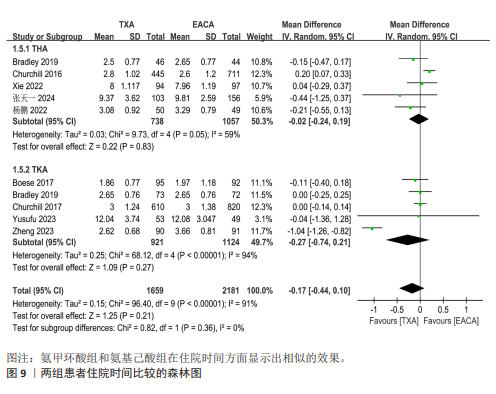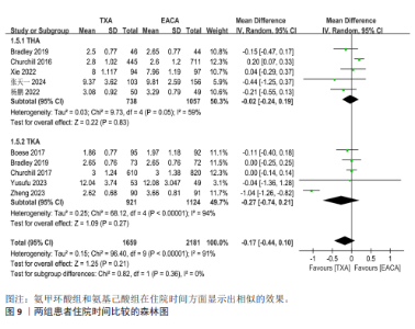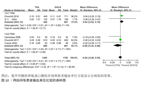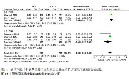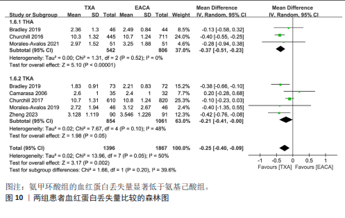 RESULTS: This meta-analysis finally included 7 randomized controlled trials and 5 non-randomized controlled trials involving 4 101 patients. During total hip arthroplasty and total knee arthroplasty, compared with epsilon-aminocaproic acid, tranexamic acid could significantly reduce total blood loss (MD=−109.58, 95%CI: −169.08 to −50.07, P < 0.001), postoperative drainage volume (MD=−35.66, 95%CI: −64.99 to −6.33, P=0.02), and hemoglobin loss (MD=−0.25, 95%CI: −0.40 to −0.09, P=0.002), and the differences were significant. However, there were no significant differences in intraoperative blood loss, operation time, hospital stay, transfusion rate, blood transfusion unit per patient, and deep vein thrombosis incidence between the two groups (P > 0.05).