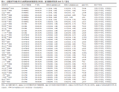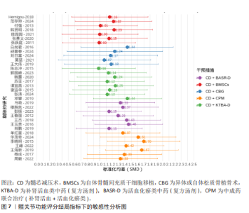 RESULTS: A total of 73 randomized controlled trials involving 5 148 patients and 5 777 hips were included, covering 15 different combination therapies. The findings revealed that: (1) In terms of overall clinical efficacy, core decompression combined with bone marrow aspirate concentrate of mononuclear cells, bone marrow mesenchymal stem cell transplantation, structural bone grafting, or kidney-tonifying and blood-activating decoction was superior to core decompression alone, with the combination involving bone marrow aspirate concentrate of mononuclear cells demonstrating the best effect (the area under the cumulative ranking probability curve = 96.23%). (2) For hip function improvement, core decompression combined with staged Chinese medicine treatment showed the highest efficacy (the area under the cumulative ranking probability curve = 93.85%). (3) Regarding pain relief, combinations with compound proprietary medicine treatment (kidney-tonifying and blood-activating plus blood-activating and stasis-resolving) or blood-activating and stasis-resolving decoction exhibited prominent benefits. (4) For radiological improvements, core decompression combined with autologous stem cell implantation showed the best outcomes (the area under the cumulative ranking probability curve = 82.56%). (5) In terms of safety, core decompression combined with blood-activating and stasis-resolving decoction was associated with a relatively lower incidence of adverse events (P < 0.05). Sensitivity analysis using the leave-one-out method confirmed the robustness of the findings. The model remained stable across analyses, and the transitivity assumption was supported by baseline covariate assessment.